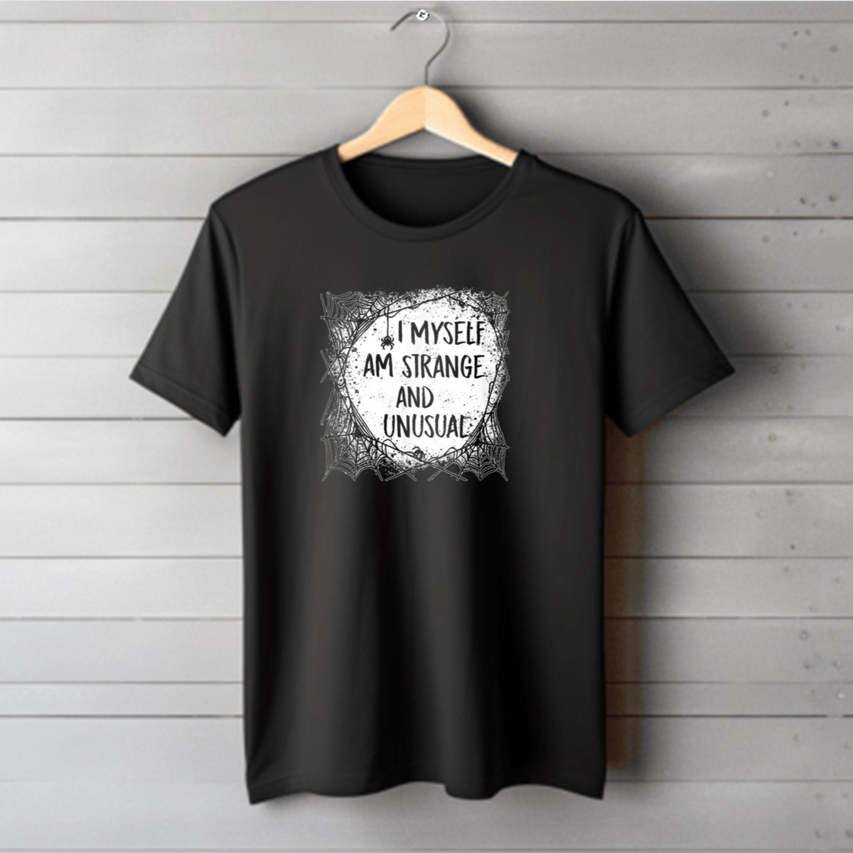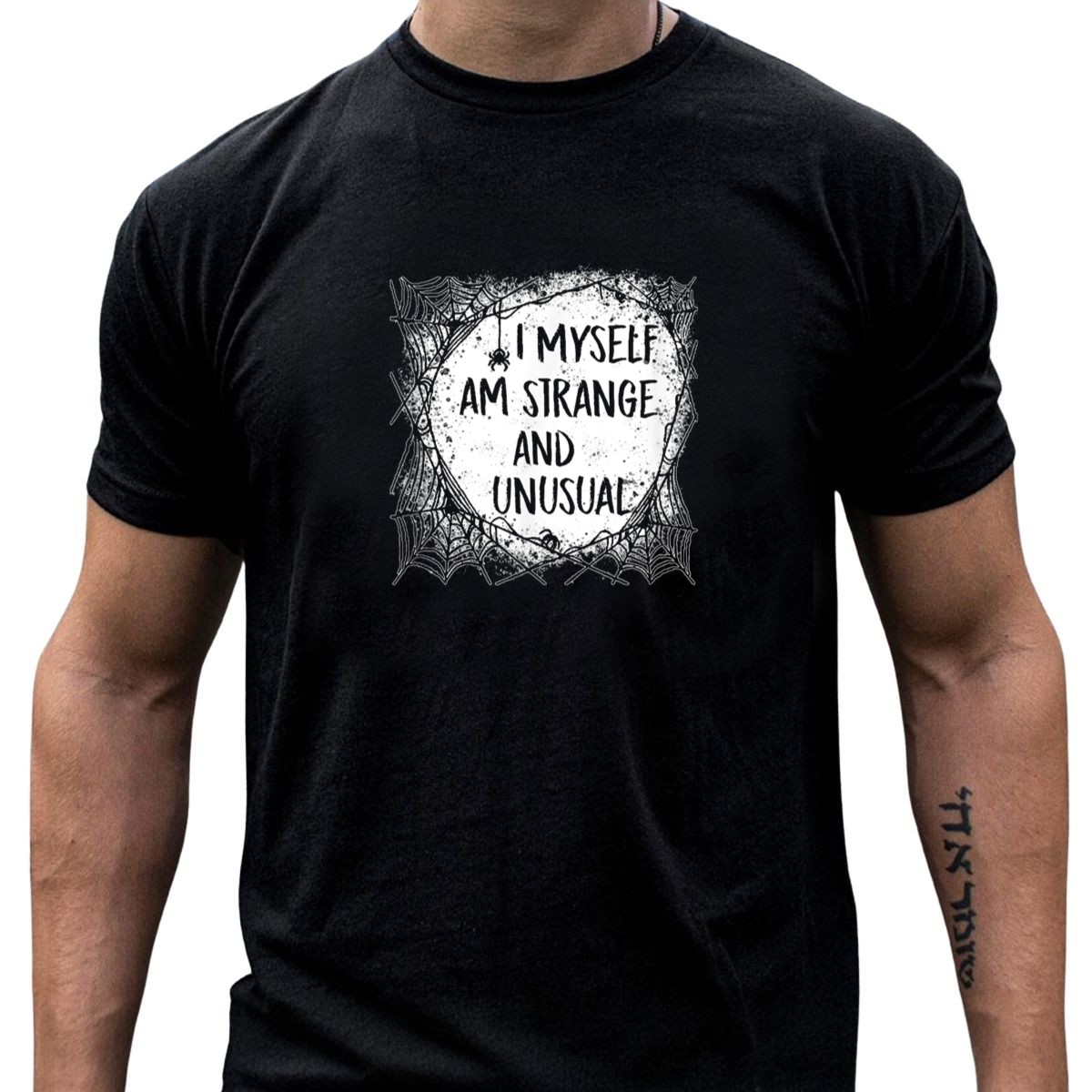 Embrace your unique style with our “I Myself Am Strange And Unusual” Halloween Spider Webs T-Shirt. Perfect for those who love to express their individuality, this shirt is designed for casual wear, themed events, or simply making a statement in your daily life. Made with a fan-made design printed in the USA, it combines comfort and creativity to create a standout piece in your wardrobe.