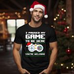 Celebrate your gaming passion and holiday spirit with our “I Paused My Game To Be Here You’re Welcome” T-shirt! Perfect for gamers and fans alike, this festive tee features a fun, fan-made design that showcases a playful blend of gaming and Christmas cheer. Whether you’re attending a themed event, hanging out with friends, or simply enjoying a casual day at home, this shirt is sure to spark conversations and bring smiles. Printed in the USA, it’s a unique addition to your wardrobe that combines comfort and style!
