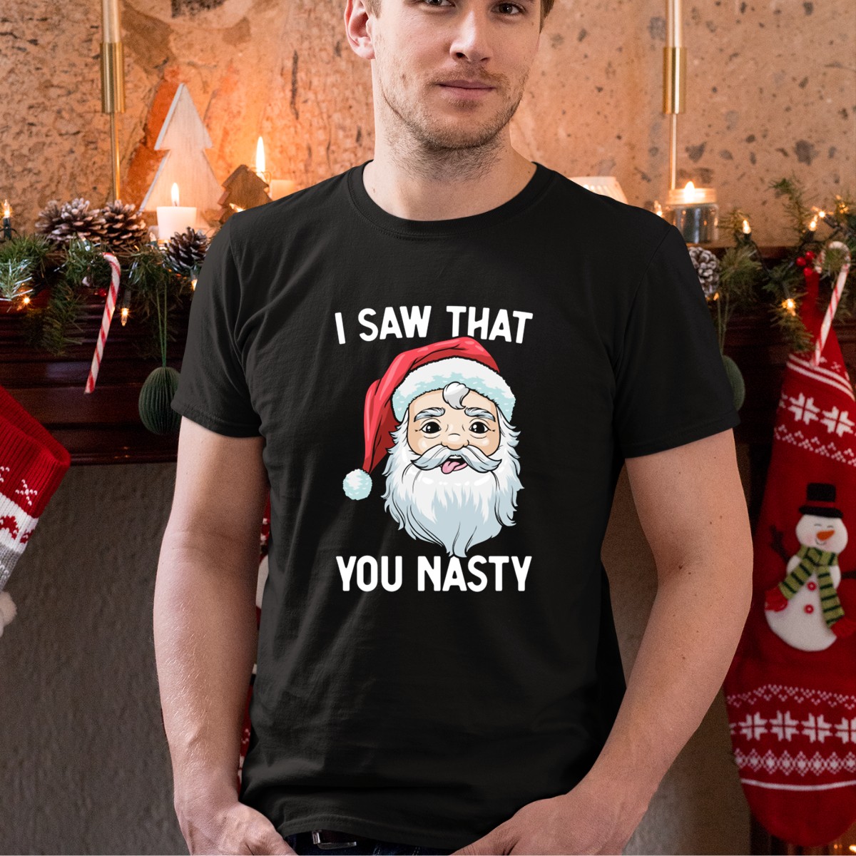 Get ready to spread some holiday cheer with our “I Saw That You Nasty” Funny Christmas Santa Claus T-Shirt! This playful and humorous design is perfect for those who love to add a touch of fun to their festive wardrobe. Ideal for casual wear, themed events, or just lounging around during the holiday season, this shirt is a must-have for anyone who enjoys a good laugh. Made with care in the USA, it’s not just a shirt; it’s a statement!