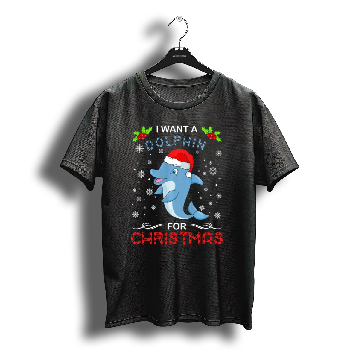 Be the first to review “I Want A Dolphin For Christmas Snowflakes Holly Santa Hat T-Shirt”