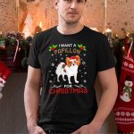 I Want A Papillon For Christmas With Santa Hat And Snowflakes T Shirt