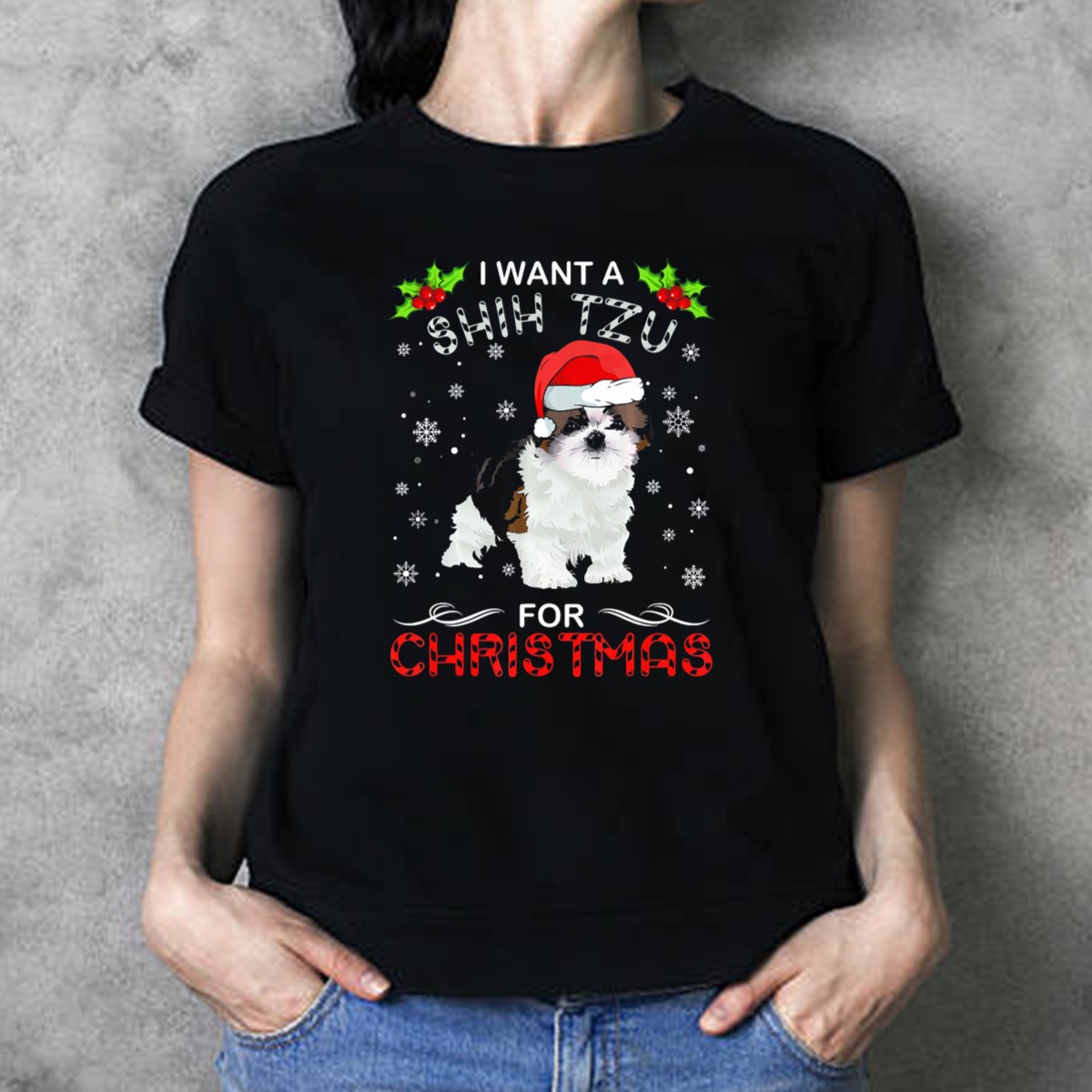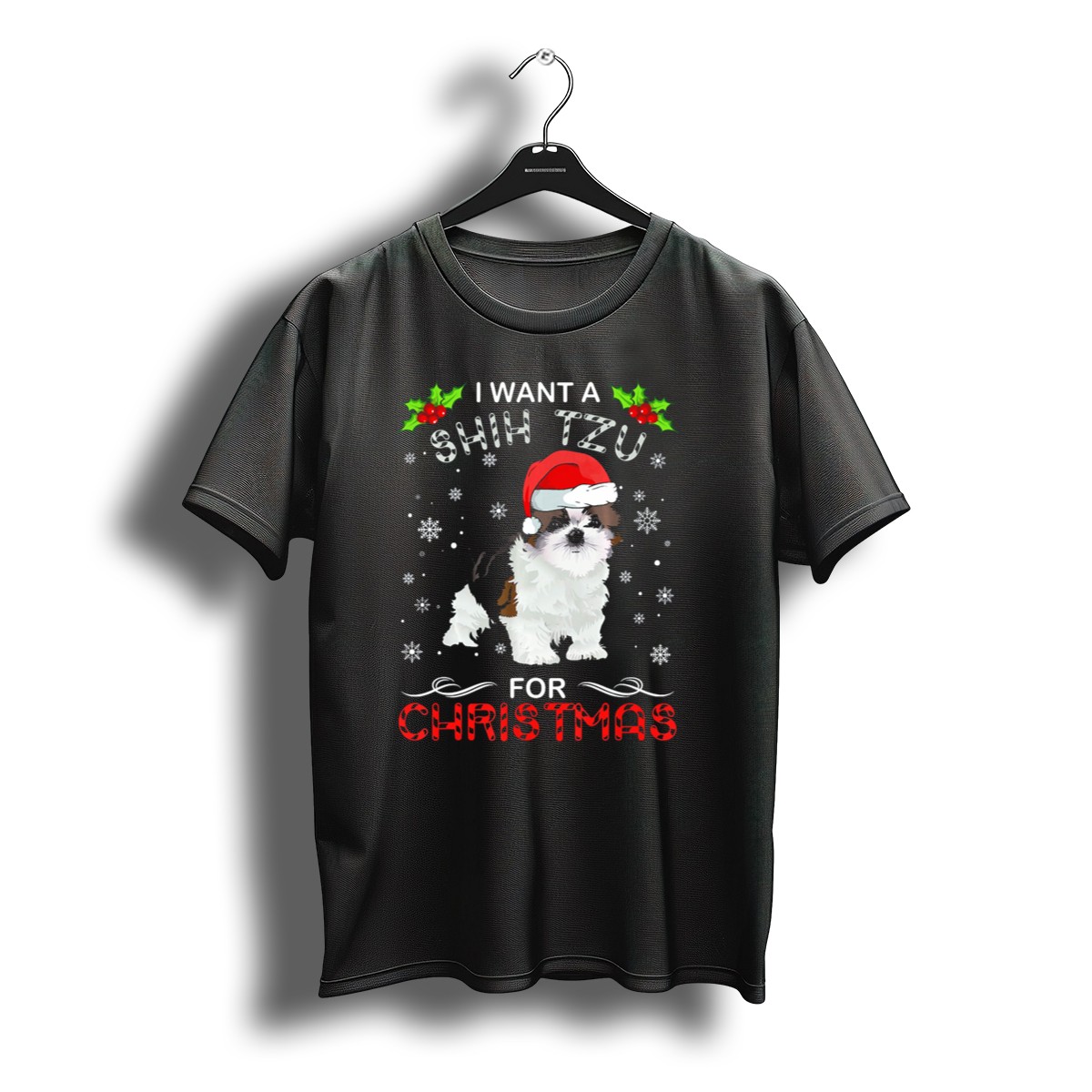 Embrace the festive spirit with our “I Want A Shih Tzu For Christmas” T-shirt, perfect for dog lovers and holiday enthusiasts alike! This fan-made design features adorable snowflakes, holly, and a cheerful Santa hat, making it an ideal choice for casual wear, themed events, or simply spreading holiday cheer. Crafted for comfort and style, this shirt is sure to become a favorite during the holiday season and beyond.