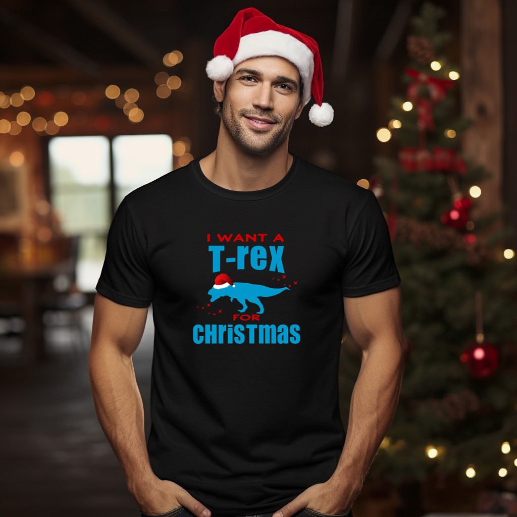 Get into the holiday spirit with our “I Want A T Rex For Christmas” T-shirt, featuring a playful design that combines festive cheer with a love for dinosaurs! Perfect for kids and adults alike, this shirt is ideal for casual wear, themed events, or just spreading joy during the holiday season. Made from high-quality materials and printed in the USA, it’s a unique addition to your festive wardrobe that will surely bring smiles and laughter.