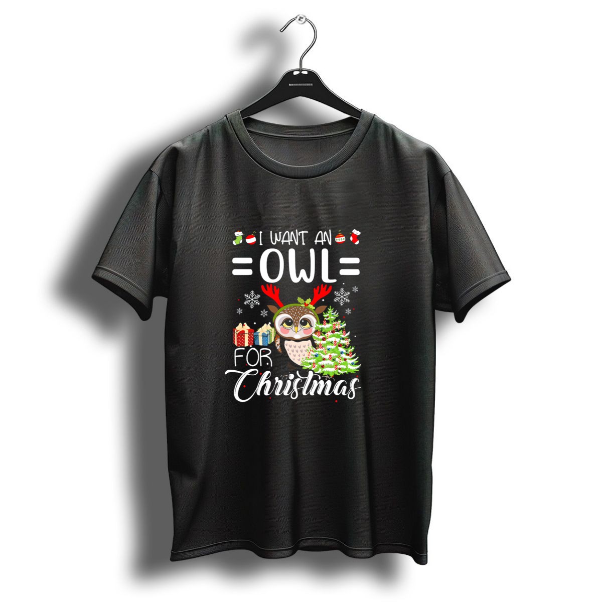 Celebrate the holiday season with our “I Want An Owl For Christmas” T-shirt, featuring a charming festive owl surrounded by gifts and a Christmas tree. This delightful design is perfect for owl lovers and anyone looking to add a touch of whimsy to their holiday attire. Whether you’re attending a themed event, enjoying a casual day out, or simply getting into the festive spirit, this shirt is sure to be a hit among friends and family. Made with care and printed in the USA, it combines comfort with a unique, fan-made design that stands out during the most wonderful time of the year.