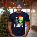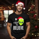 Unleash your holiday spirit with a whimsical twist in our “I Want To Believe Alien Santa Hat Christmas UFO T-Shirt”! Perfect for believers and skeptics alike, this fun design is ideal for festive gatherings, themed events, or simply bringing a dash of humor to your daily wear. Made for those who appreciate the blend of holiday cheer and extraterrestrial charm, this shirt is sure to spark conversations and spread smiles wherever you go.