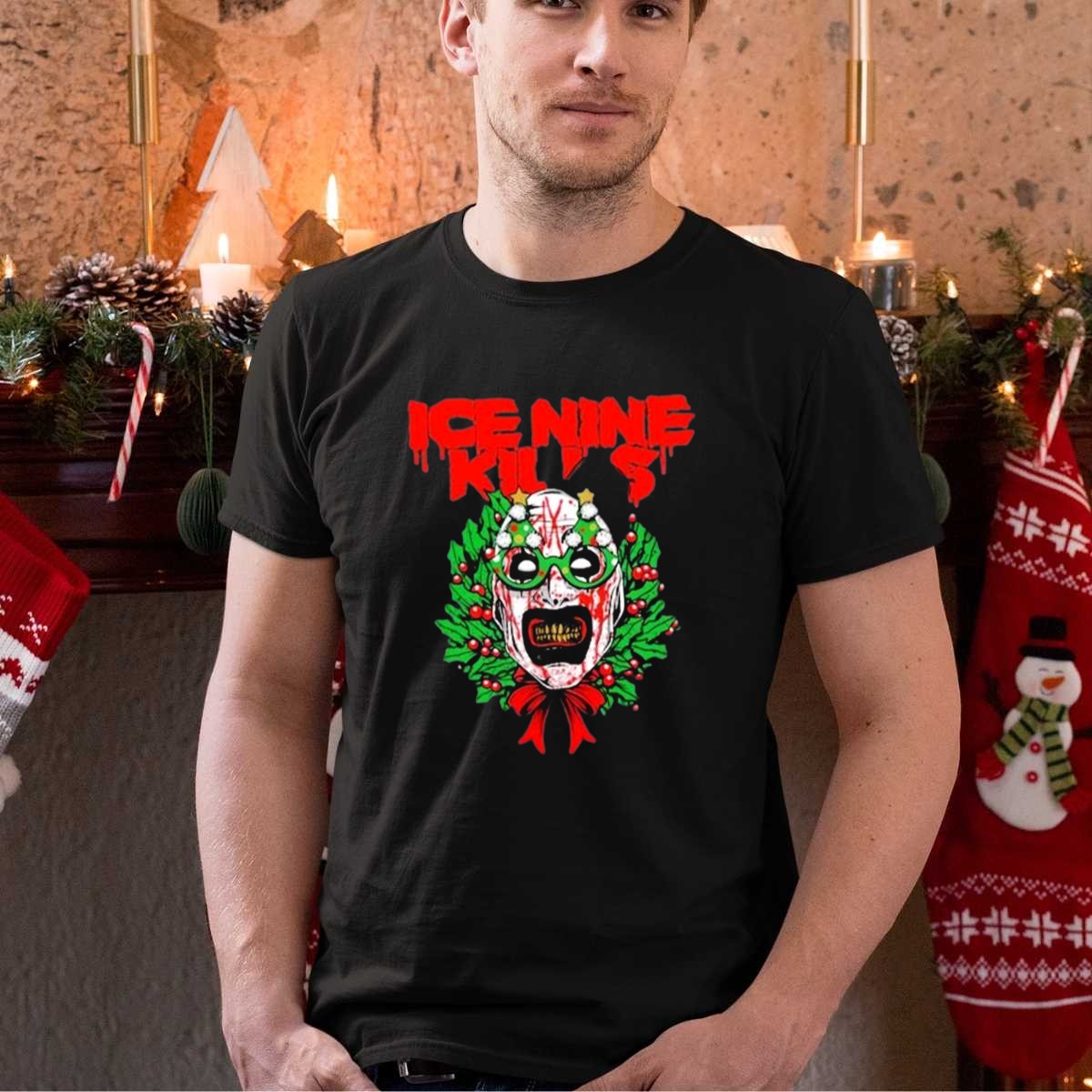 Embrace the eerie spirit of the season with the Ice Nine Kills Horror Christmas Wreath Mask T-Shirt, a must-have for fans of horror and holiday fun. Perfect for casual outings, themed events, or simply showcasing your love for the genre, this unique tee combines festive cheer with chilling thrills. Crafted with care in the USA, it’s designed to keep you comfortable while making a bold statement wherever you go.