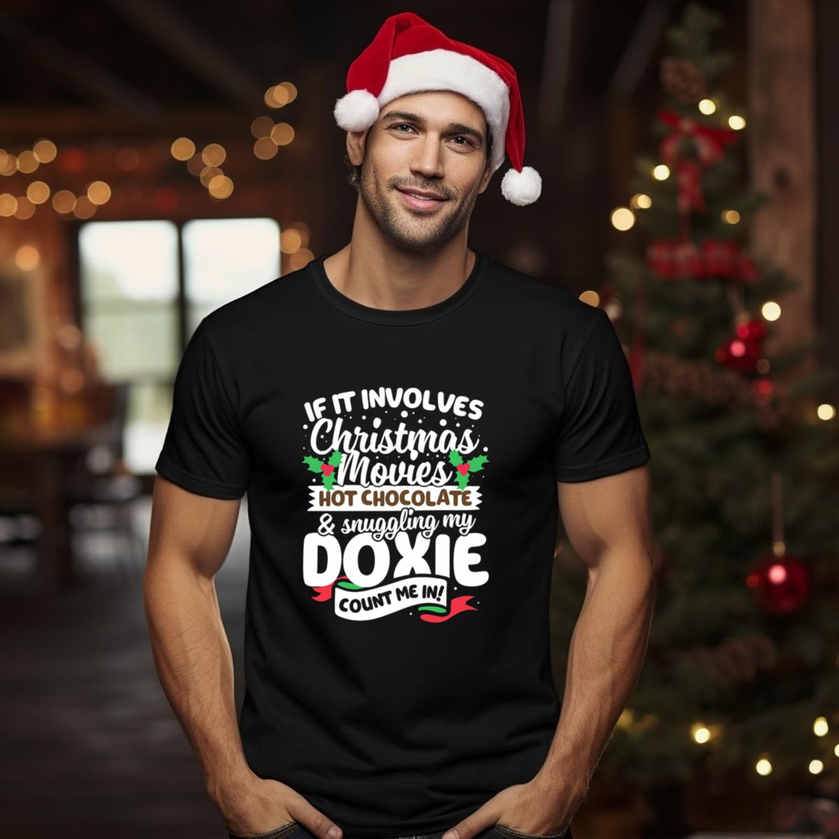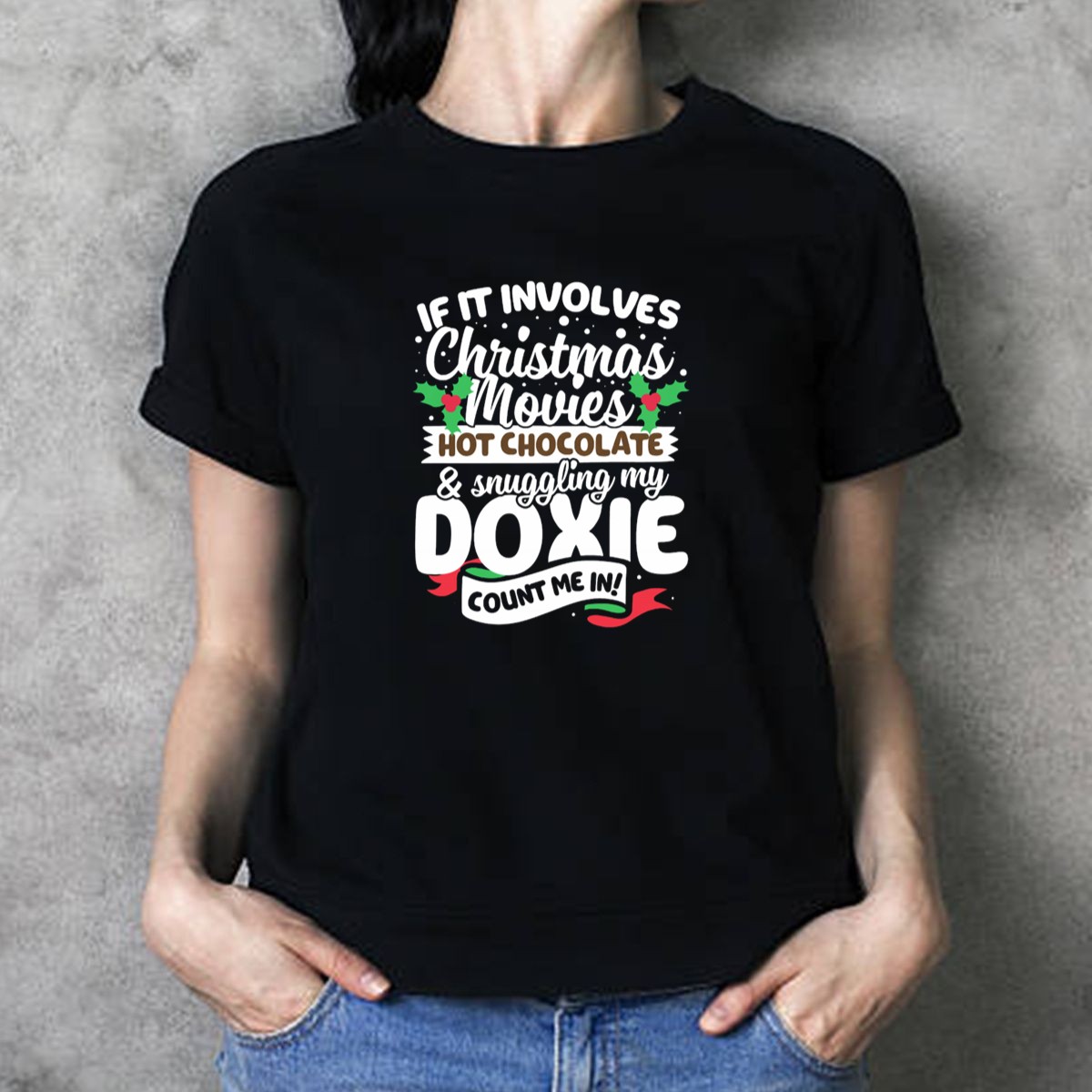Celebrate the cozy essence of the holiday season with our “If It Involves Christmas Movies Hot Chocolate Snuggling My Doxie Count Me In” T-shirt! Perfect for dog lovers and Christmas enthusiasts alike, this fan-made design captures the joy of snuggling up with your favorite furry friend while enjoying festive films and warm drinks. Ideal for casual wear, themed events, or just lounging at home, this shirt is a must-have for anyone looking to spread holiday cheer in style.