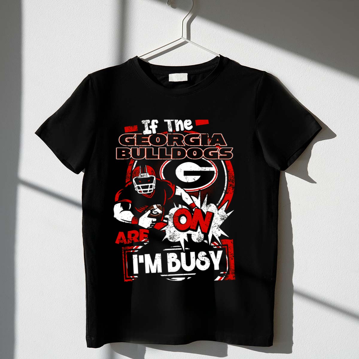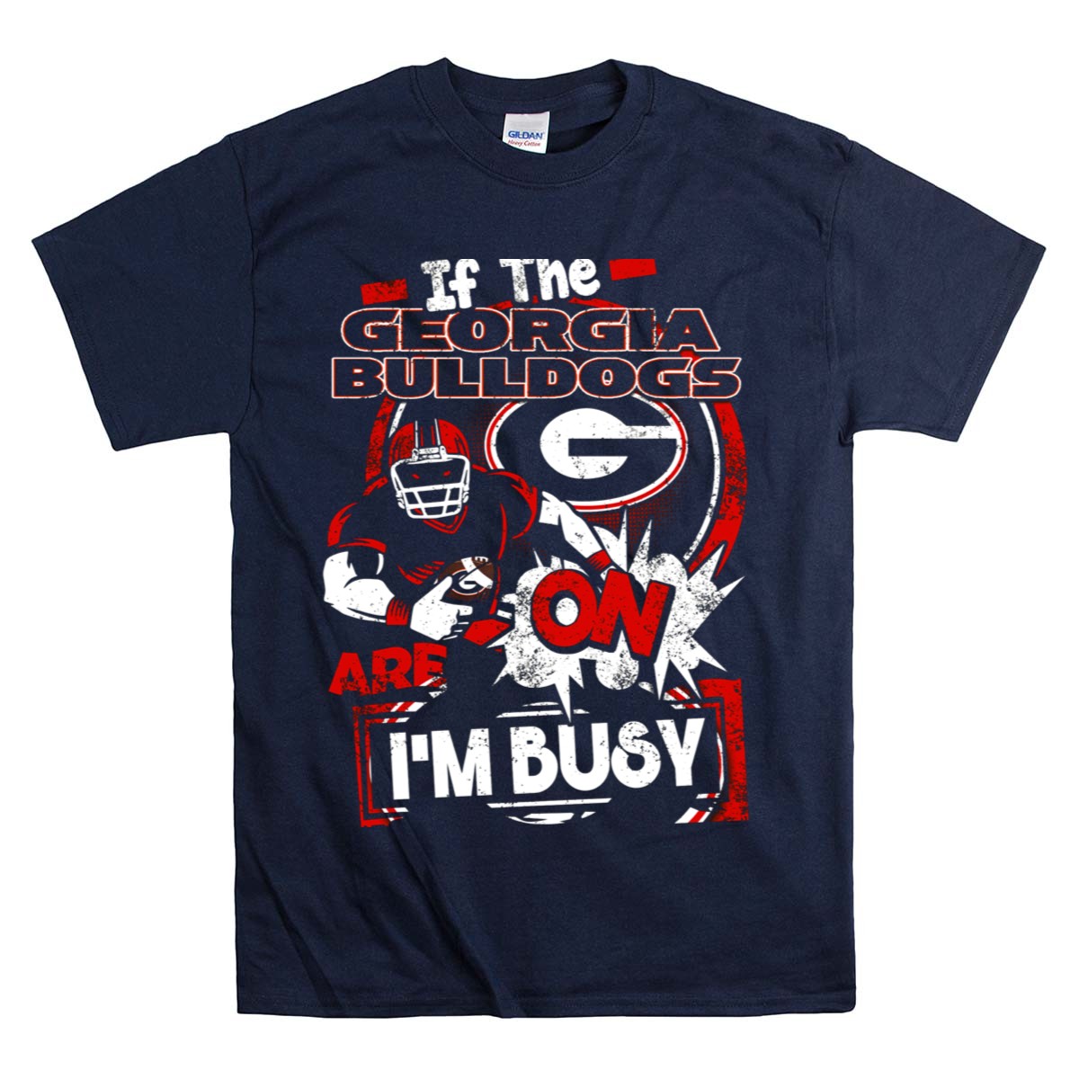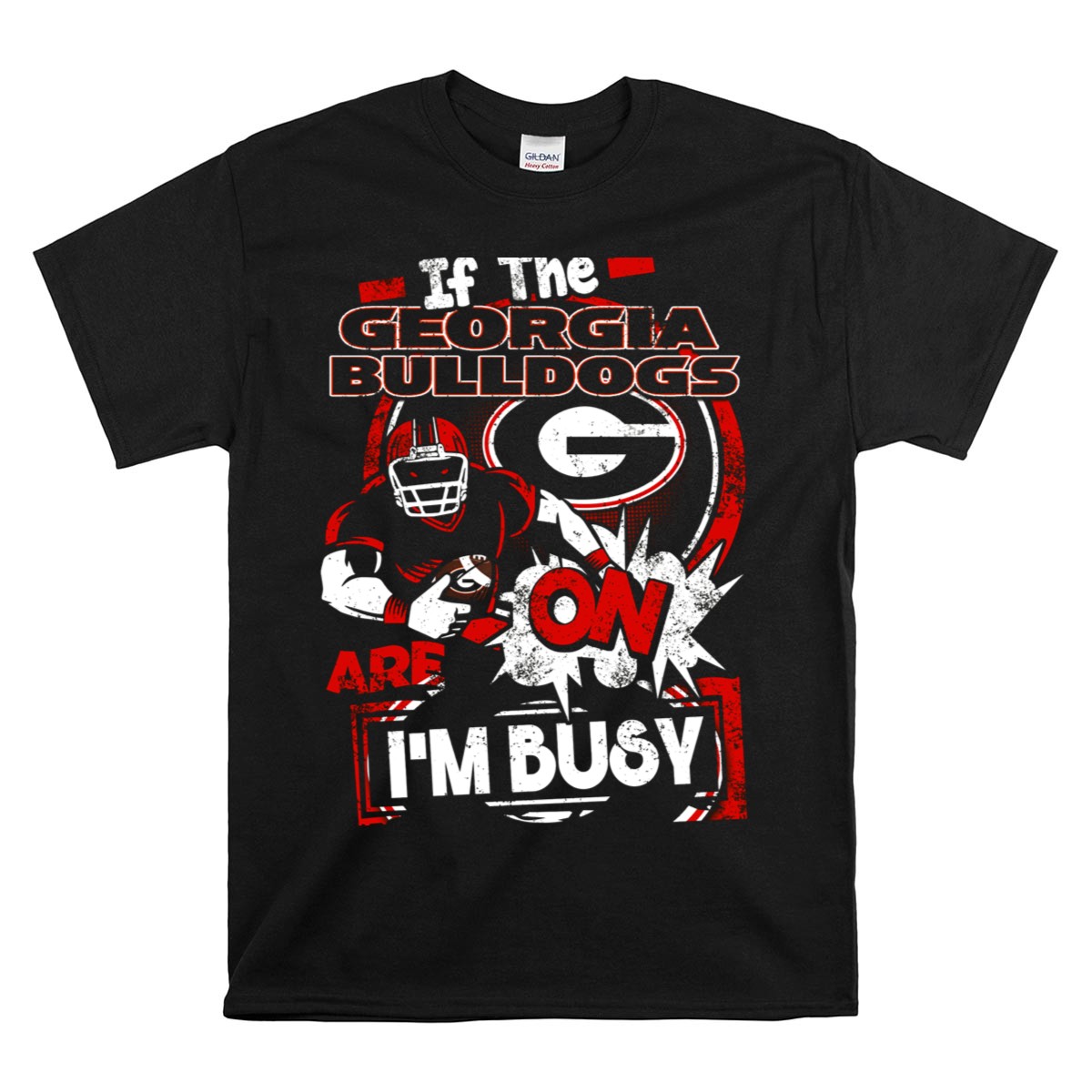 Show your unwavering support for the Georgia Bulldogs with our “If The Georgia Bulldogs Are On I’m Busy” T-Shirt! Perfect for fans who live and breathe college football, this shirt is ideal for game days, tailgating parties, or just lounging at home while you cheer on your favorite team. Made for comfort and style, this fan-made design is printed right here in the USA, making it a unique addition to any Bulldogs fan’s wardrobe.