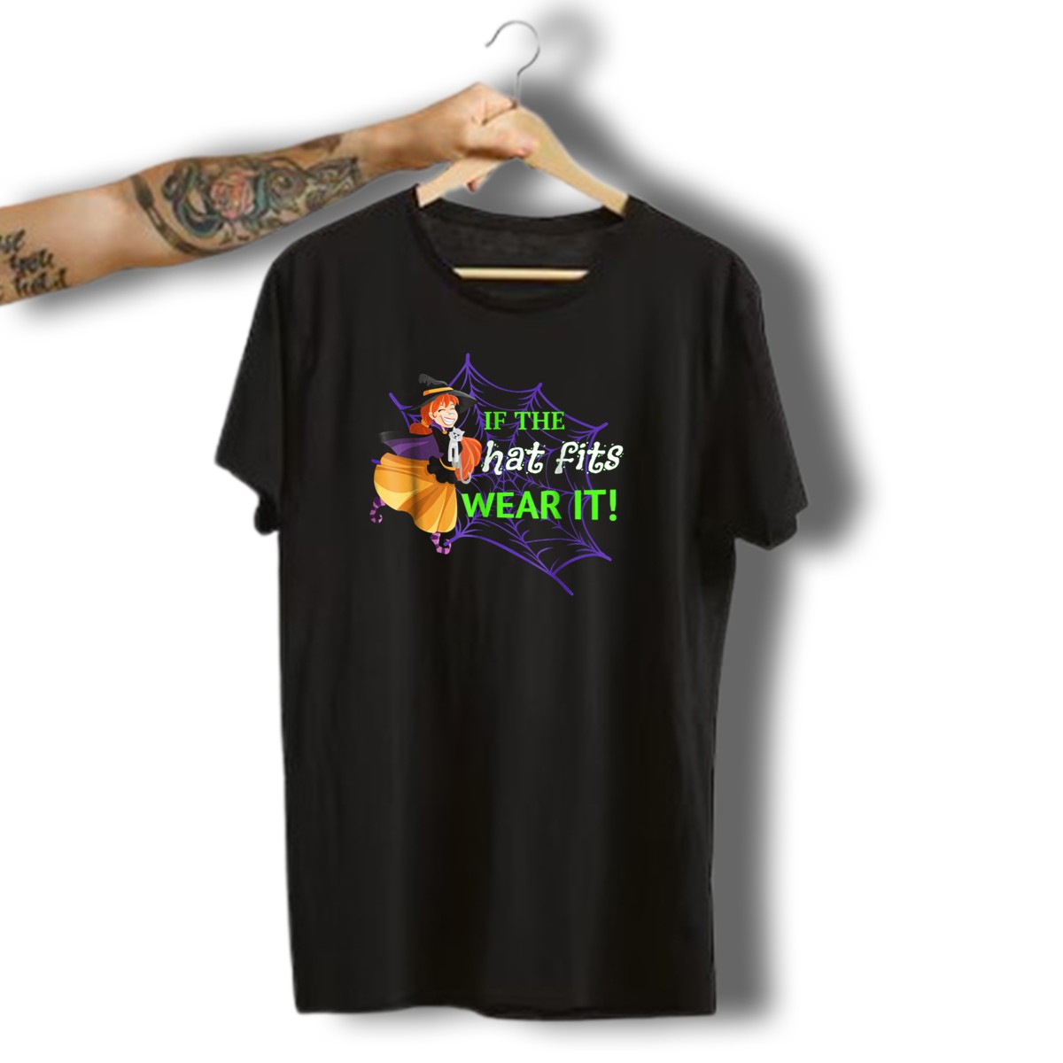 Embrace the spooky spirit of Halloween with our “If The Hat Fits Wear It” graphic T-shirt, designed for those who love to celebrate the season in style! Perfect for witches, ghouls, and anyone who enjoys themed events, this shirt features a fun and eye-catching design that showcases your festive flair. Made with soft, durable cotton, it’s the ideal choice for casual outings, Halloween parties, or simply adding a little magic to your daily wear. Show off your love for all things Halloween while staying comfortable and stylish!