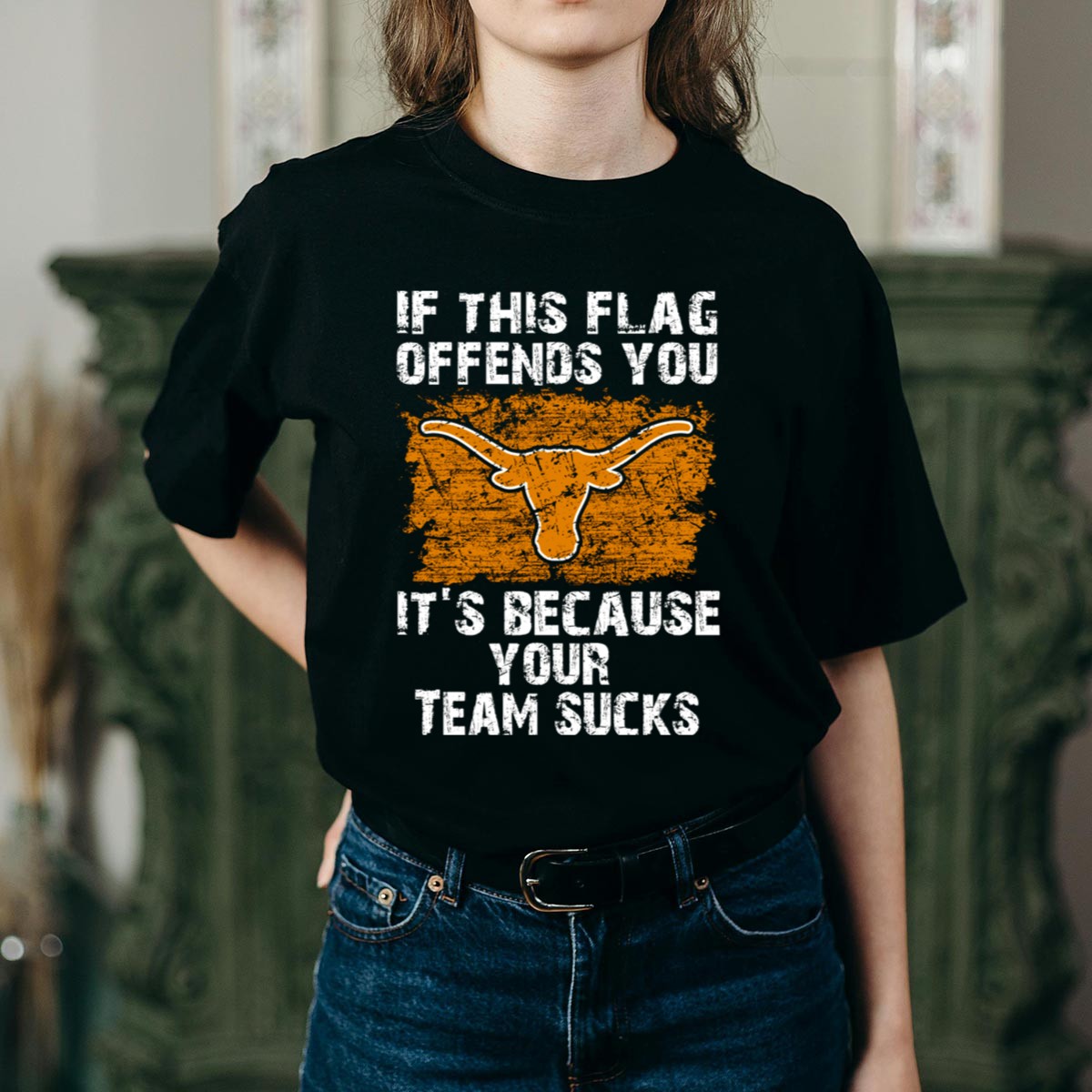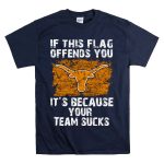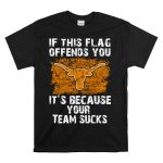 Show your Texas Longhorn pride with this bold “If This Flag Offends You, It’s Because Your Team Sucks” T-shirt. Perfect for die-hard fans, this unisex tee makes a statement at casual outings, themed events, or daily wear. Crafted for comfort and style, it features a unique fan-made design proudly printed in the USA, making it a standout addition to any Longhorns supporter’s wardrobe.