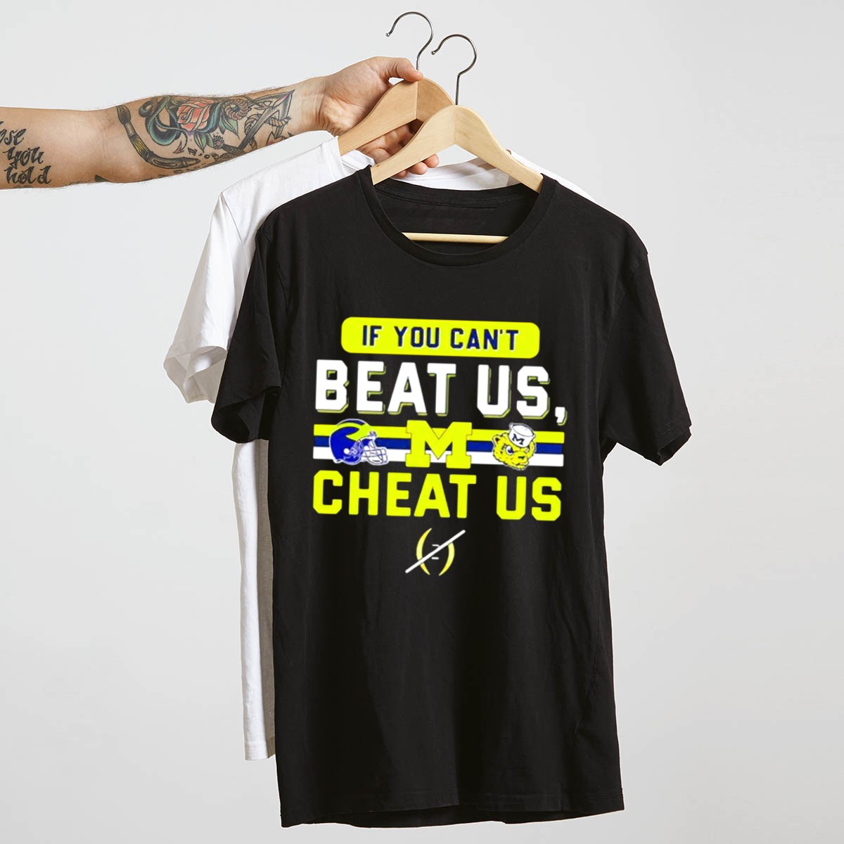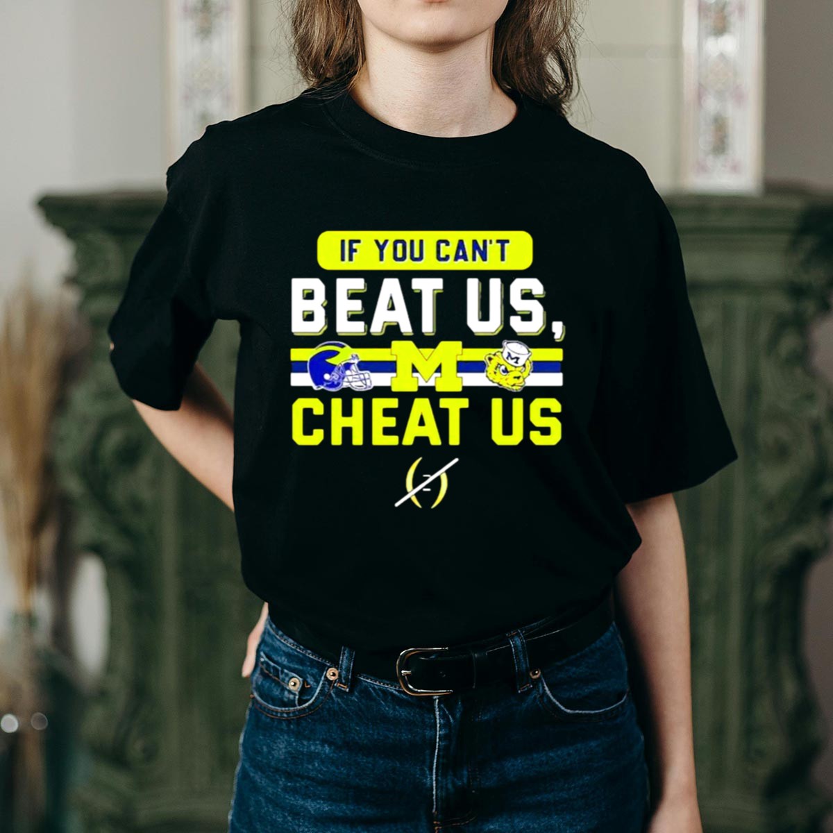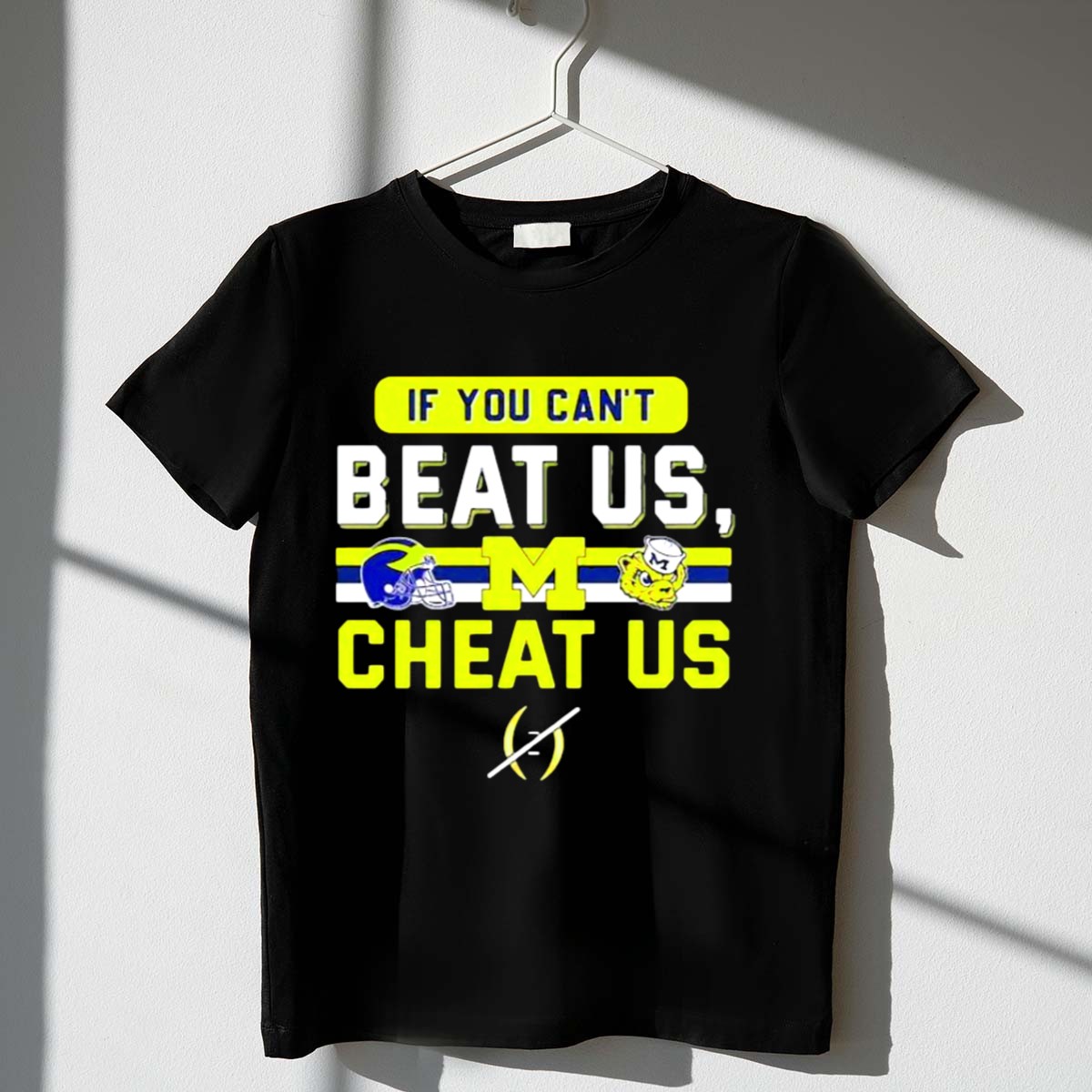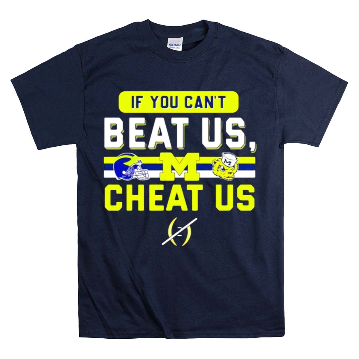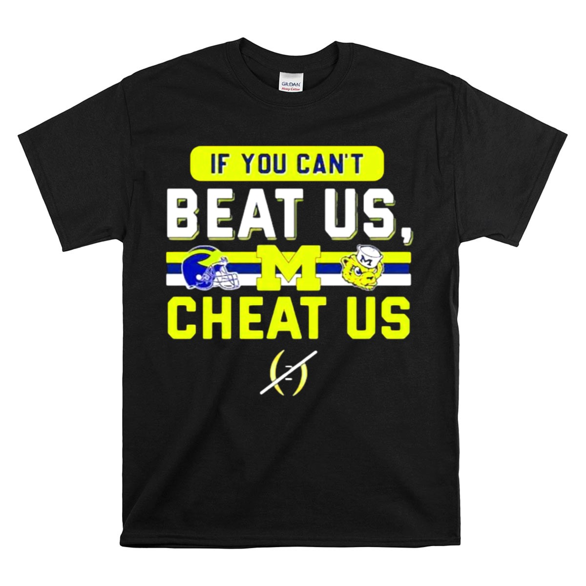 Show your unwavering support for the Michigan Wolverines with our “If You Can’t Beat Us, Cheat Us” T-Shirt. This fan-made design features the iconic helmet logo and mascot, making it the perfect shirt for true Wolverines enthusiasts. Ideal for casual outings, themed events, or just daily wear, this classic fit t-shirt will keep you comfortable while you cheer on your team. Proudly printed in the USA, this shirt is a unique way to showcase your team spirit.