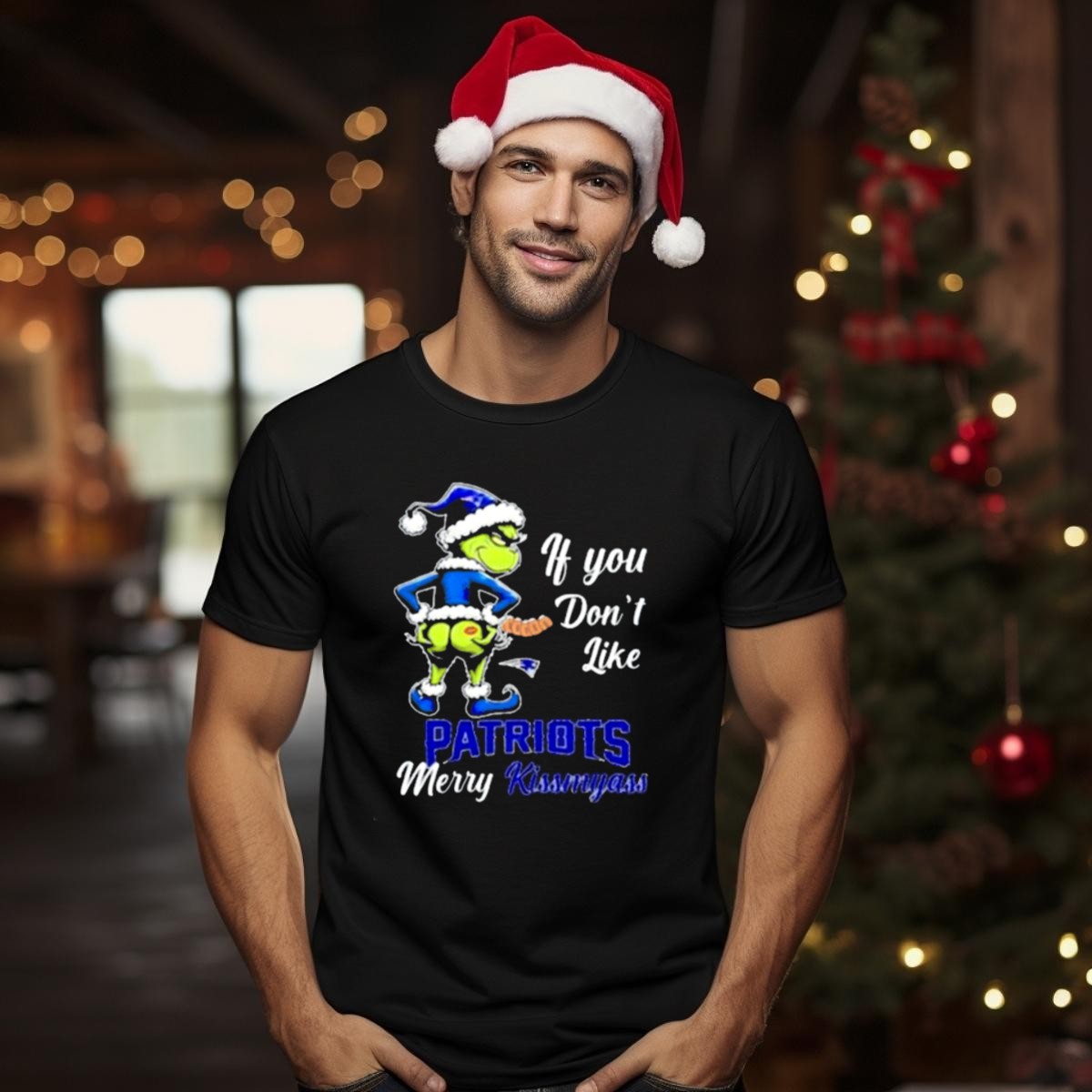 Celebrate the holiday season with a twist of humor in our “If You Don’t Like Patriots Merry Kiss My Ass Grinch Christmas T-Shirt”! Perfect for fans who love to showcase their team spirit while enjoying festive gatherings, this shirt is ideal for casual wear, themed events, or simply spreading some holiday cheer. Made with a unique fan-made design, this shirt is printed in the USA, ensuring you stand out in style this Christmas.