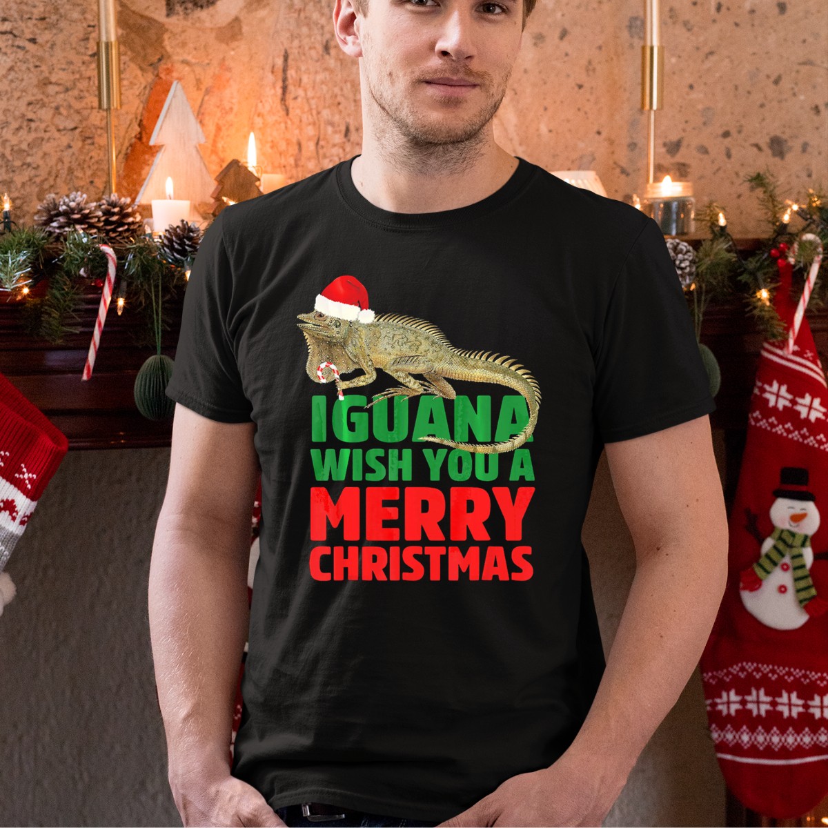 Celebrate the holiday season in style with our Iguana Wish You A Merry Christmas Santa Hat Candy Cane T-Shirt! Perfect for casual get-togethers, themed events, or just spreading festive cheer, this unique fan-made design showcases a playful iguana donning a Santa hat and surrounded by candy canes. Crafted for comfort and durability, this shirt is an ideal choice for anyone looking to add a touch of fun to their holiday wardrobe.
