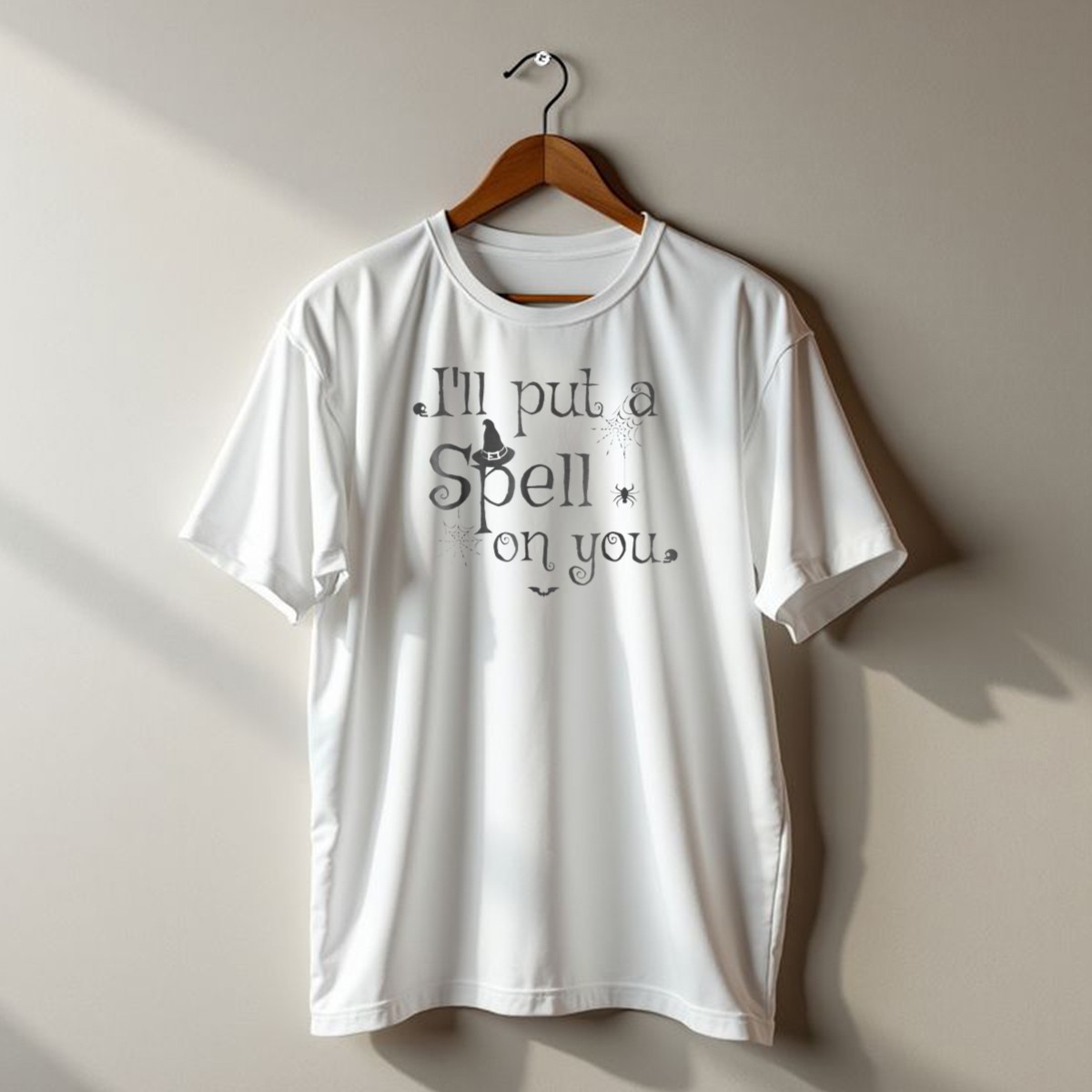 Get ready to enchant your wardrobe with our “I’ll Put A Spell On You” Halloween T-shirt! Perfect for fans of the spooky season, this graphic tee features a whimsical design adorned with witch hats, spider webs, and bats, making it an ideal choice for Halloween parties, themed events, or just casual outings. Crafted for comfort and style, this shirt lets you showcase your love for all things Halloween while keeping your look effortlessly chic.
