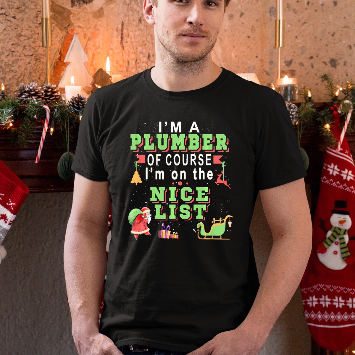 I’M A Plumber Of Course I’M On The Nice List Santa Christmas Sleigh And Gifts T-Shirt