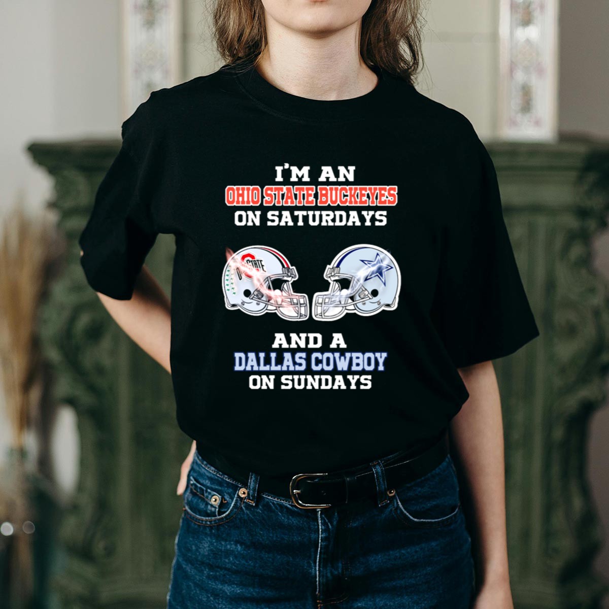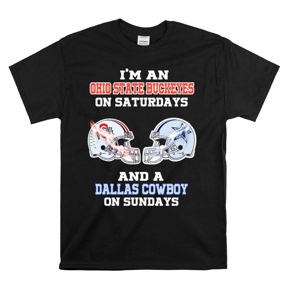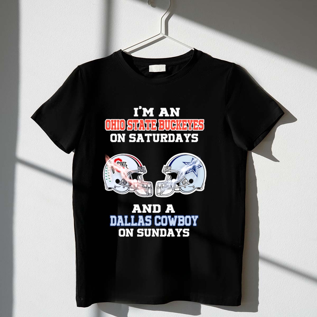 Show your true colors with our “I’m An Ohio State Buckeyes On Saturdays And A Dallas Cowboy On Sundays” T-Shirt! Perfect for passionate fans who live for game days and want to showcase their loyalty in style. This unique fan-made design celebrates your love for two iconic teams, making it an ideal choice for casual outings, themed events, or simply lounging around on weekends. Crafted for comfort and durability, this shirt is sure to be a favorite in your wardrobe.