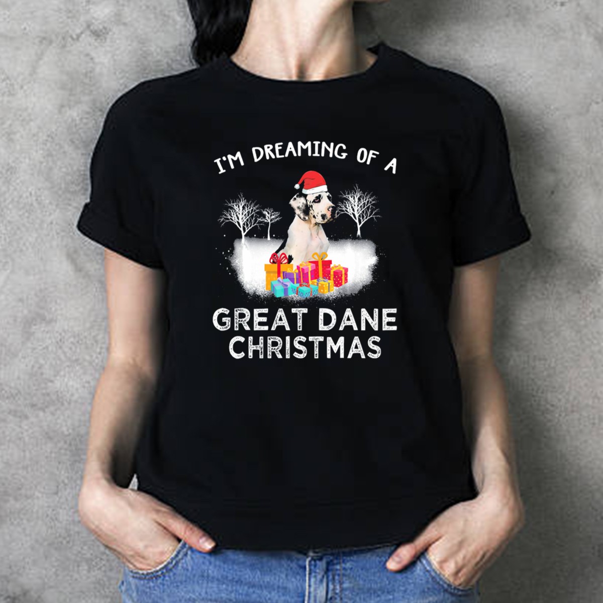 Celebrate the holiday season with our “I’m Dreaming Of A Great Dane Christmas” T-shirt, perfect for dog lovers and festive gatherings! This fan-made design features a playful Great Dane adorned with a Santa hat and surrounded by gifts, making it a whimsical addition to your casual wardrobe. Ideal for themed events, family gatherings, or simply spreading holiday cheer, this shirt is a must-have for those who cherish their furry friends during the most wonderful time of the year.