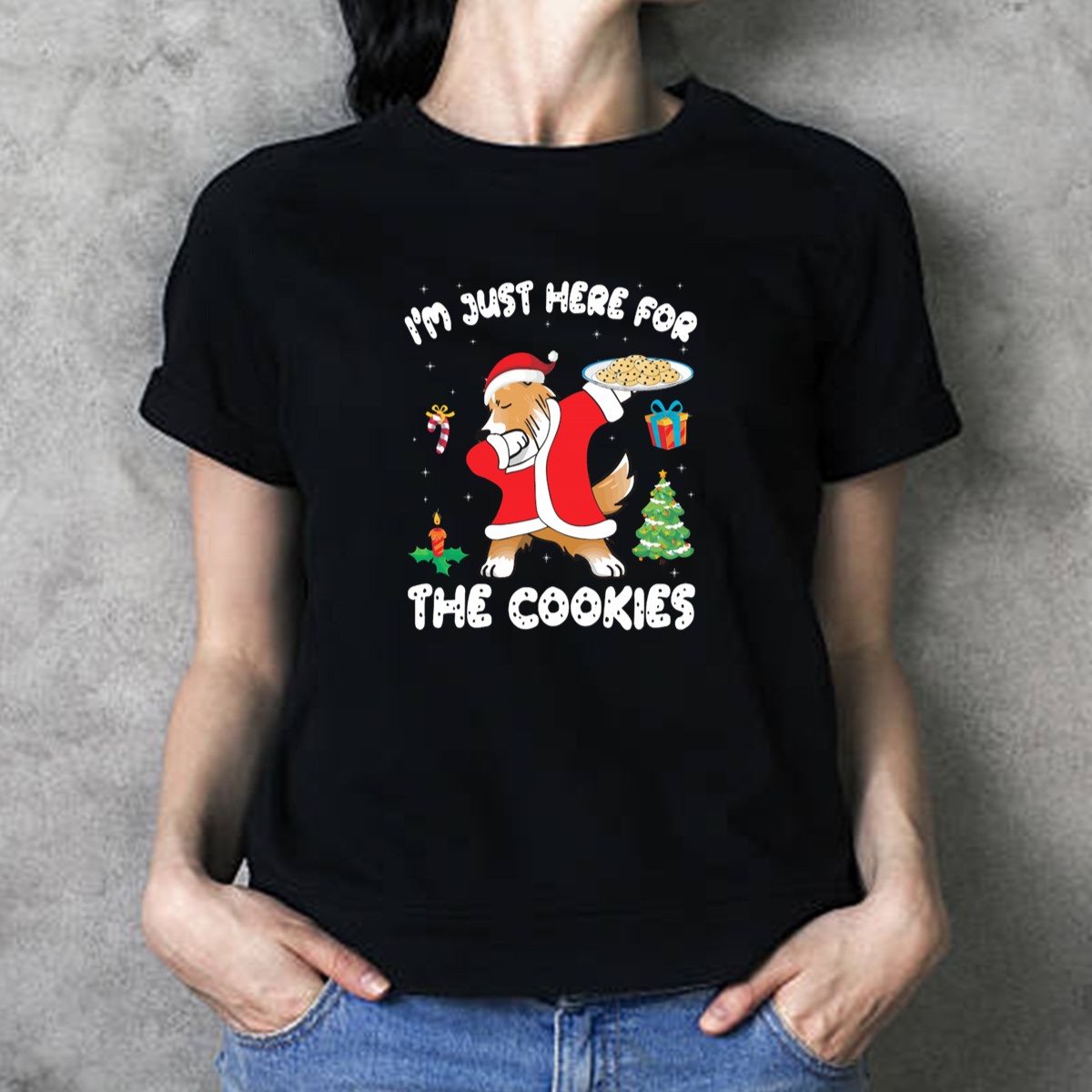 Celebrate the festive season with our “I’m Just Here For The Cookies” Sheltie Dog Dabbing Christmas Tree T-Shirt! Perfect for dog lovers and cookie enthusiasts alike, this fun and playful design captures the joy of the holidays while showcasing your love for Shelties. Ideal for casual wear, themed events, or just lounging around at home, this shirt is sure to bring smiles and spark conversations wherever you go. Plus, it’s fan-made and printed in the USA, making it a unique addition to your holiday wardrobe!