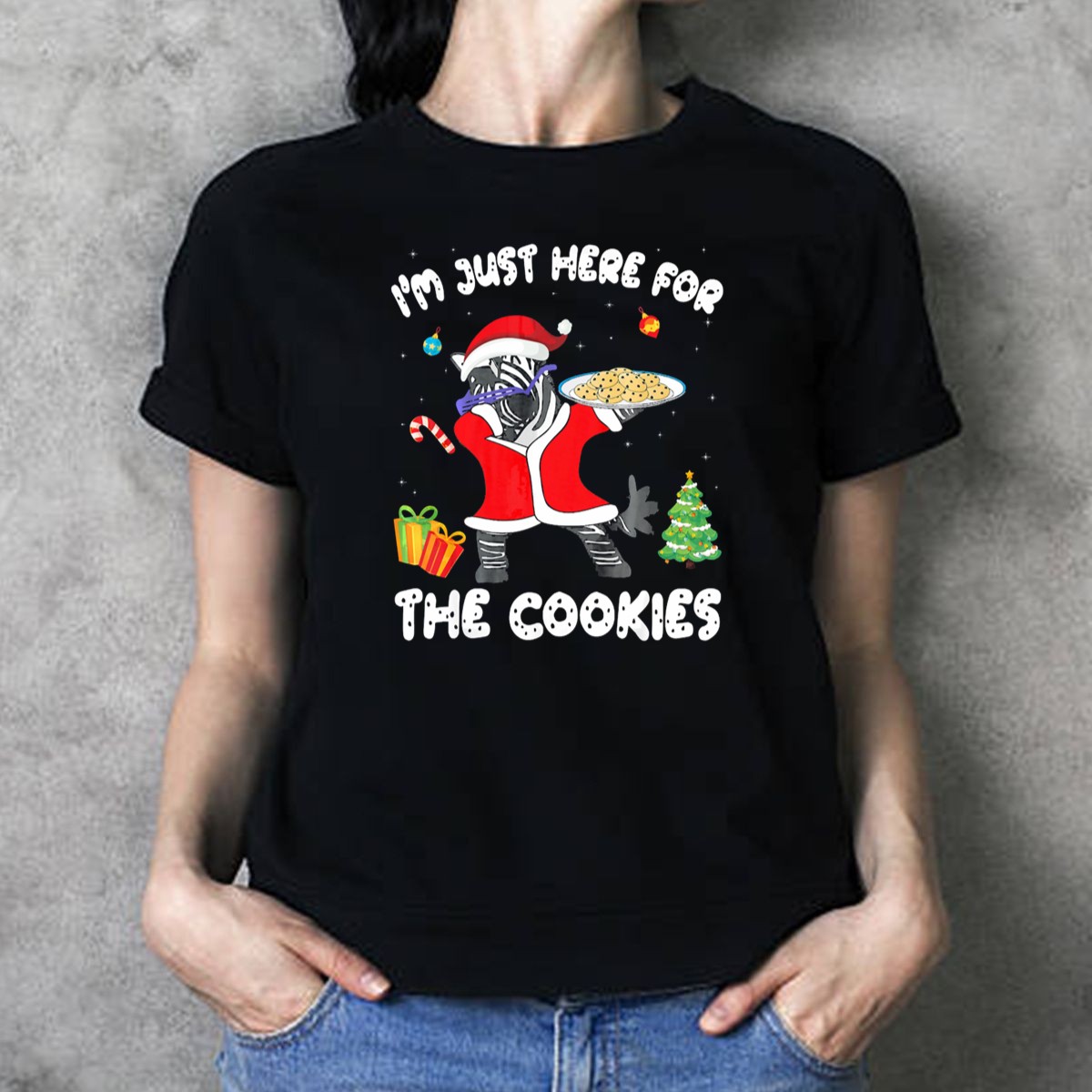 Celebrate the festive season with our “I’m Just Here For The Cookies” Zebra Dabbing Christmas T-shirt! Perfect for cookie lovers and holiday enthusiasts alike, this shirt adds a playful twist to your Christmas attire. Whether you’re attending a themed event, having a casual get-together with friends, or simply enjoying the holiday spirit at home, this fan-made design will surely make you the life of the party. Printed in the USA, it’s a unique addition to your all-season wardrobe!