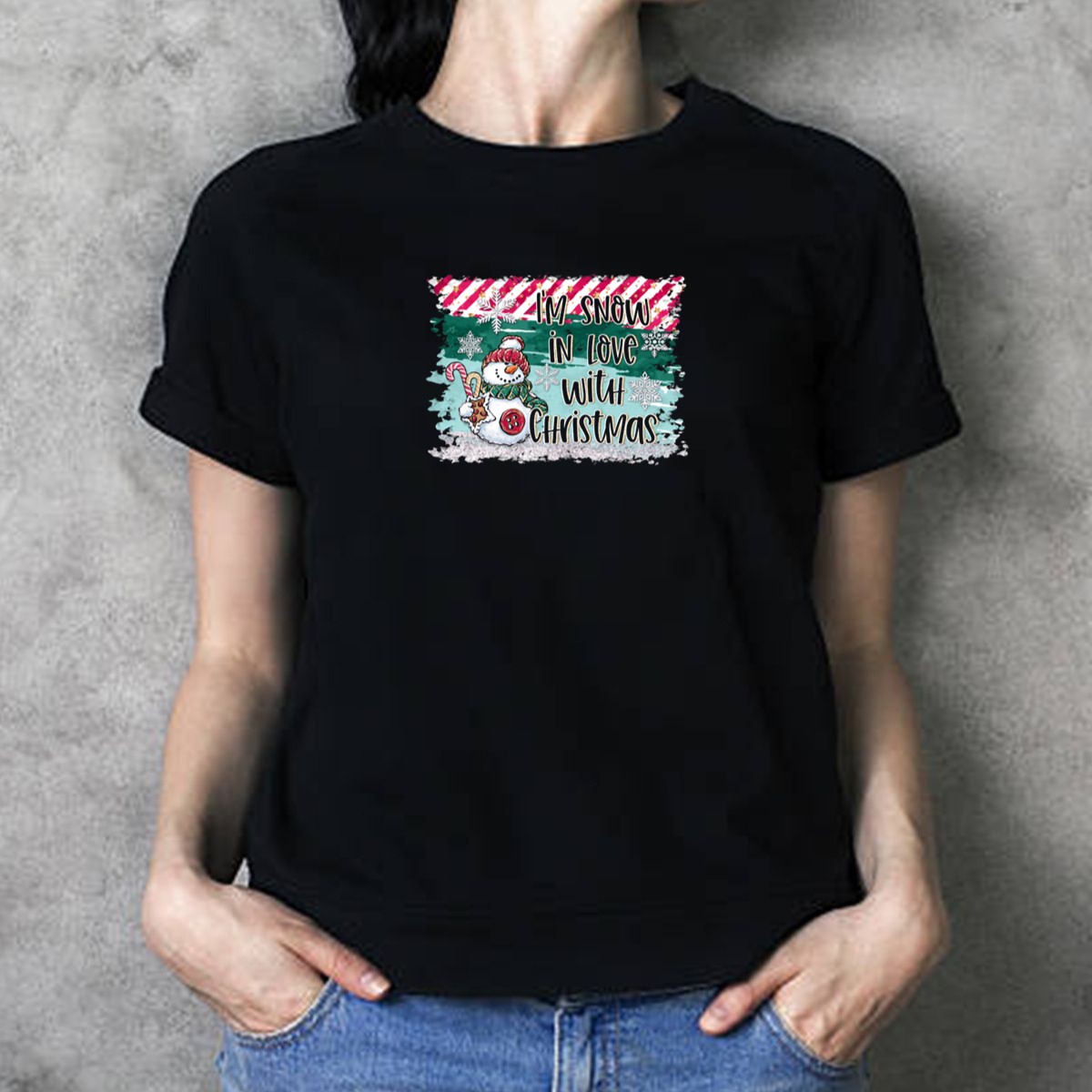 Celebrate the magic of the holiday season with our “I’m Snow In Love With Christmas” T-shirt featuring an adorable snowman, candy canes, and festive snowflakes. This charming design is perfect for anyone who wants to spread joy and cheer during themed events, casual outings, or simply while enjoying daily wear. Crafted for comfort and style, this fan-made graphic T-shirt is printed in the USA, ensuring a unique addition to your winter wardrobe.
