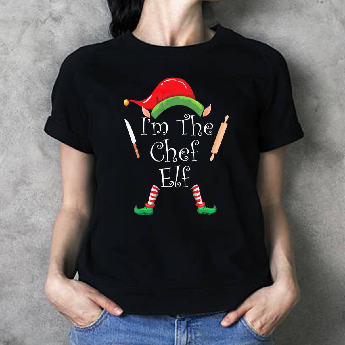 Be the first to review “I’m The Chef Elf Christmas Hat Knife Rolling Pin Striped Socks T-Shirt”