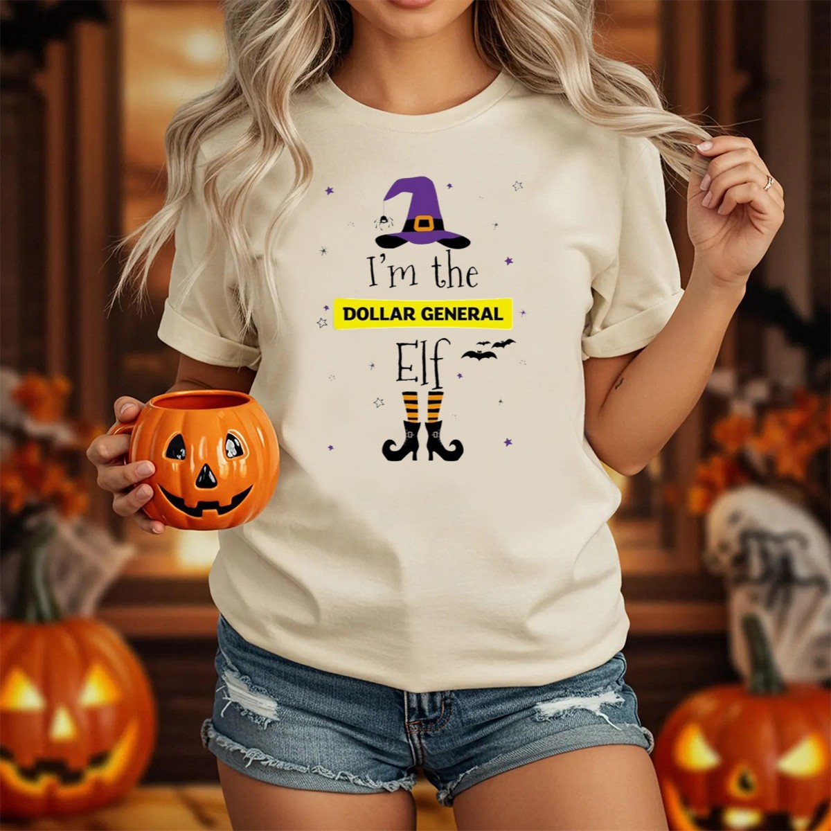 Get ready to spread some Halloween cheer with our “I’m The Dollar General Elf” T-shirt! Perfect for those who love to embrace the festive spirit, this fan-made design features a whimsical witch hat and boots theme that’s sure to turn heads at themed events or casual outings. Made for all-season wear, this shirt combines fun and comfort, making it an ideal choice for daily wear or festive gatherings with friends and family.