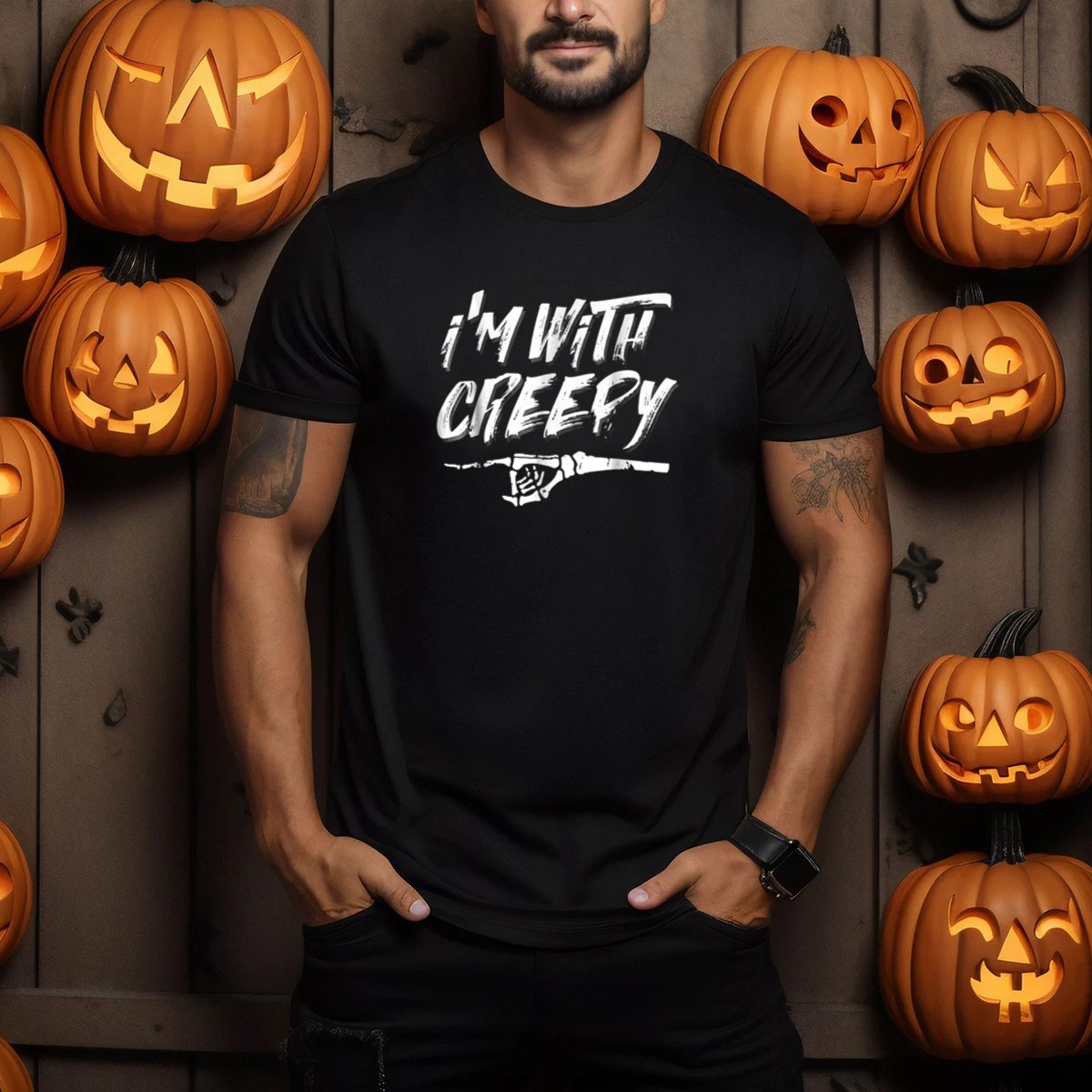 Get ready to embrace the spookiness of Halloween with our “I’m With Creepy Skeleton Couples” T-shirt! This fun and quirky design is perfect for couples looking to celebrate the season in style. Whether you’re attending a themed party, going trick-or-treating, or just hanging out with friends, this shirt will make a statement and showcase your playful spirit. Made with love in the USA, it’s a must-have for anyone who enjoys a little Halloween fun!