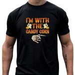 Embrace the spirit of Halloween with our “I’m With The Candy Corn” T-shirt, featuring a fun and playful design of skeleton hands, ghosts, and pumpkins. Perfect for those who love to celebrate the spooky season in style, this shirt is ideal for casual outings, themed events, or just adding a touch of festive flair to your daily wear. Made with a fan-made graphic printed right here in the USA, it’s a unique addition to any Halloween enthusiast’s wardrobe.