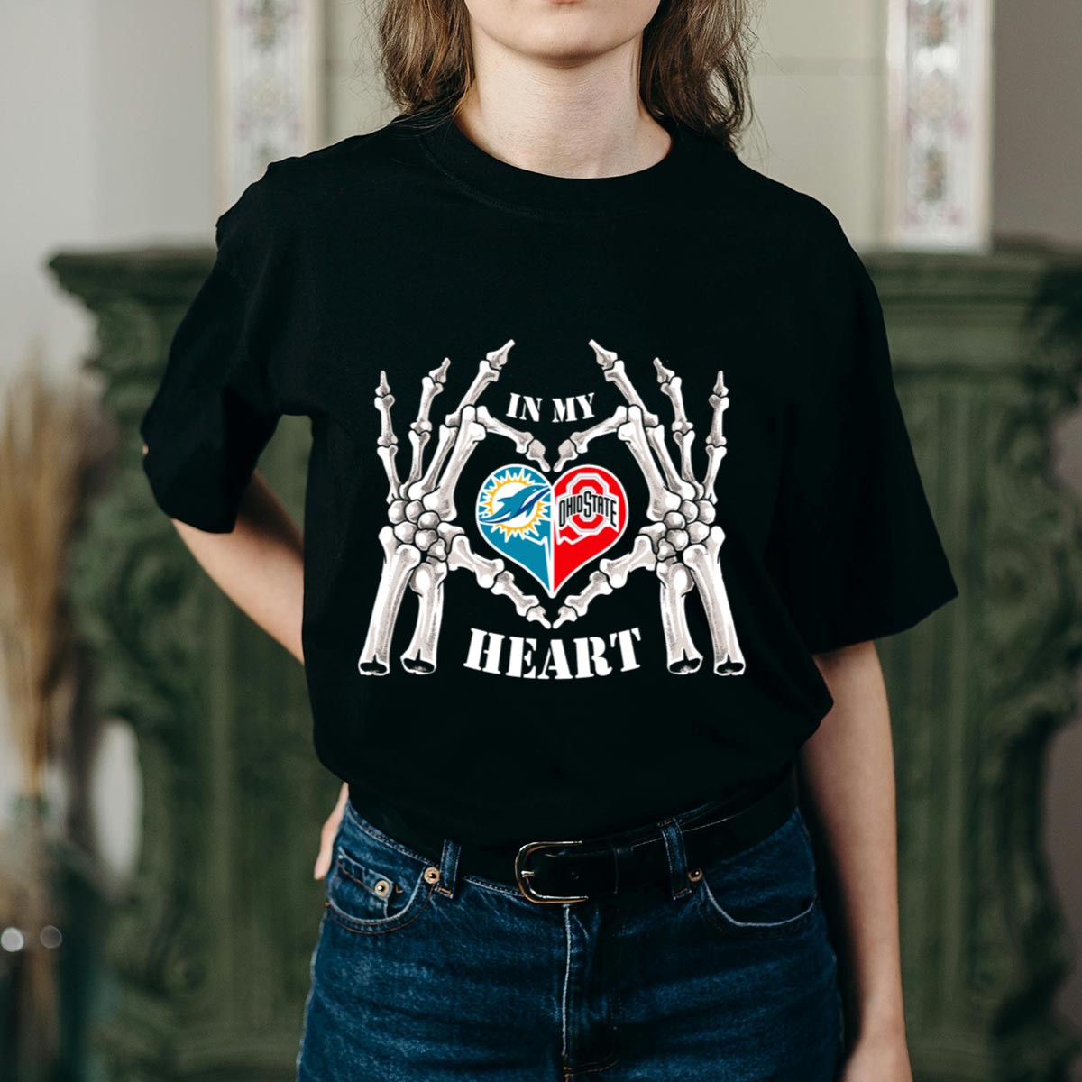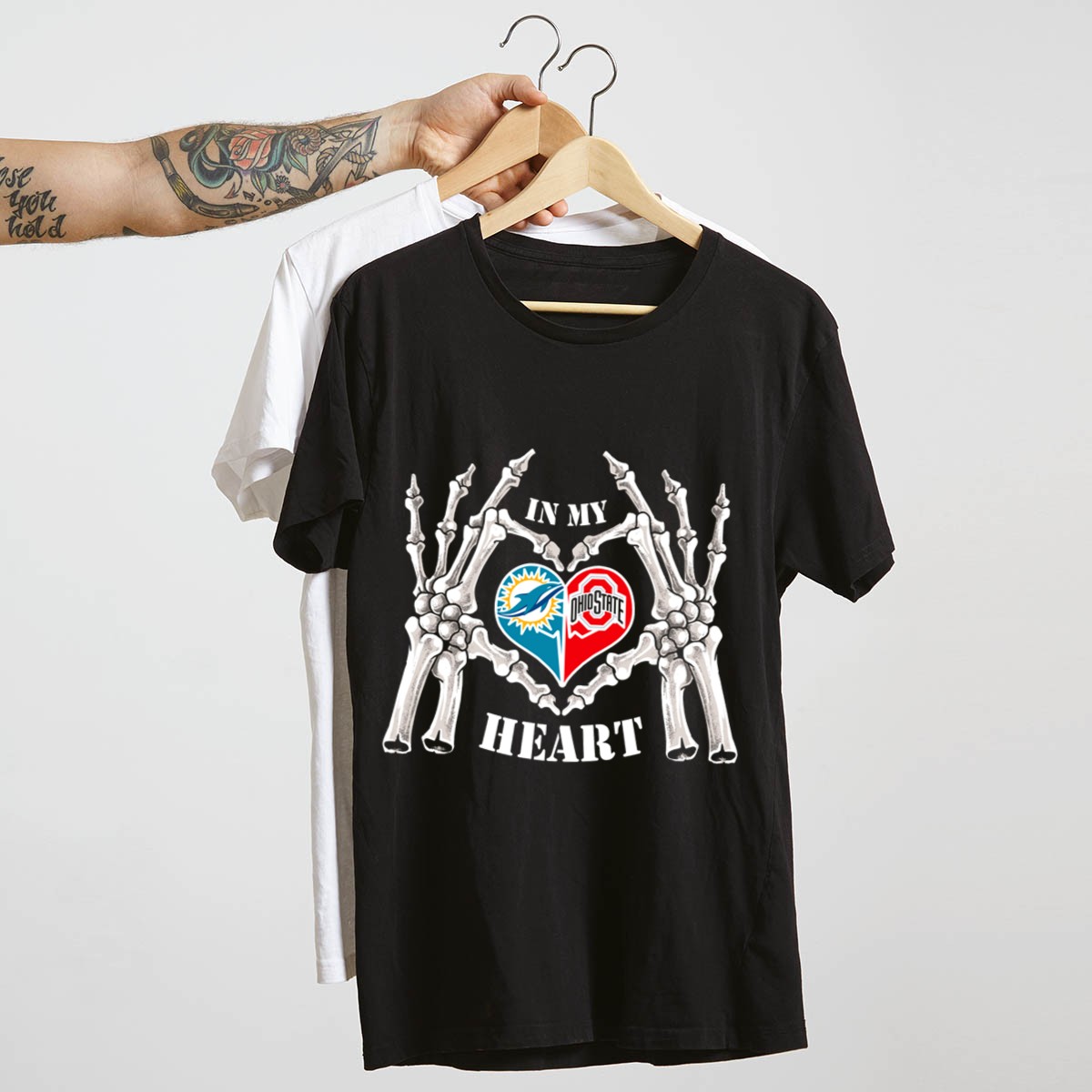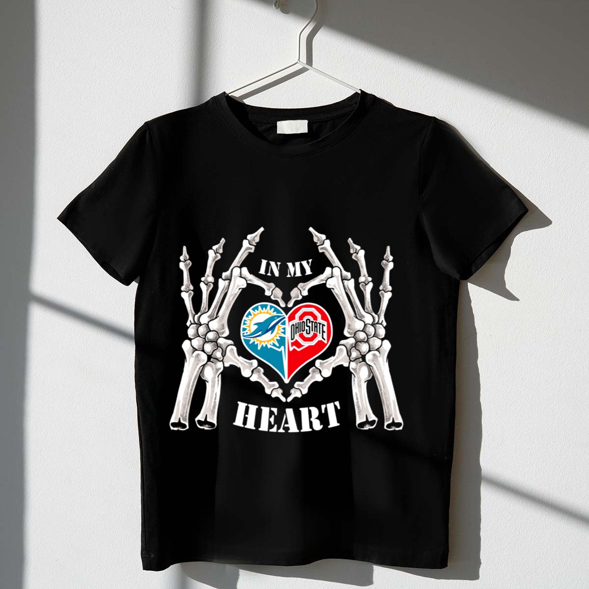Be the first to review “In My Heart Miami Dolphins Ohio State Buckeyes Skeleton Hands T Shirt”