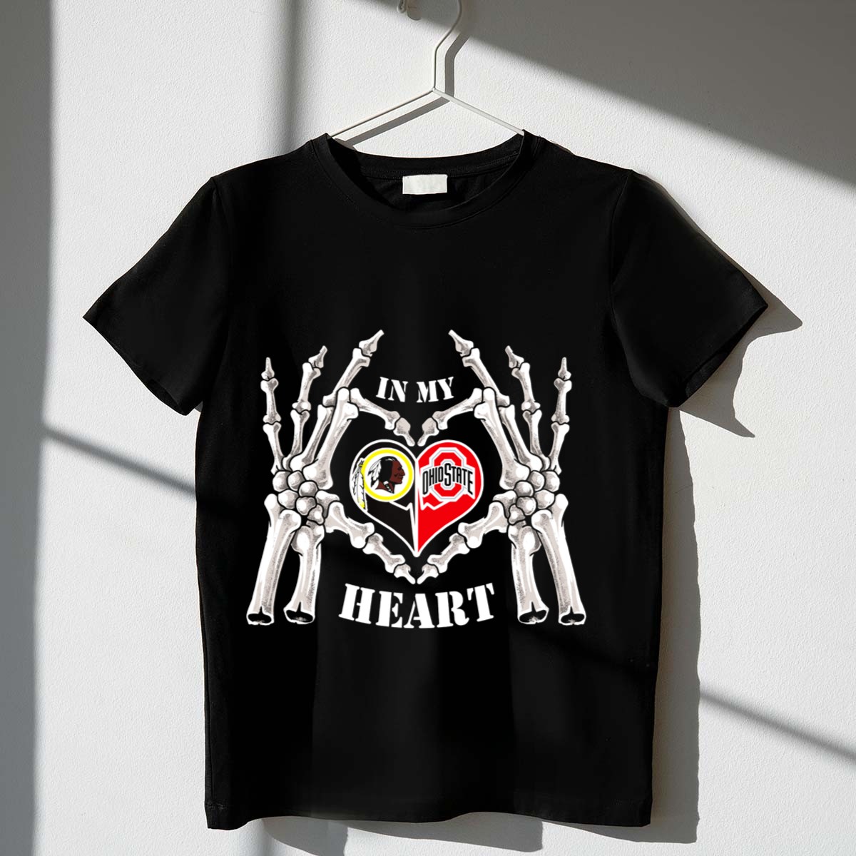 Get ready to showcase your team spirit this Halloween with our “In My Heart Washington Redskins Ohio State Buckeyes Skeleton” T-Shirt! This fan-made design combines the excitement of football with the fun of Halloween, making it perfect for die-hard fans and party-goers alike. Whether you’re heading to a themed event, a casual outing with friends, or just want to express your love for your favorite teams, this shirt is your go-to choice for all-season wear. Proudly printed in the USA, it’s a unique piece that stands out while keeping you comfortable and stylish.