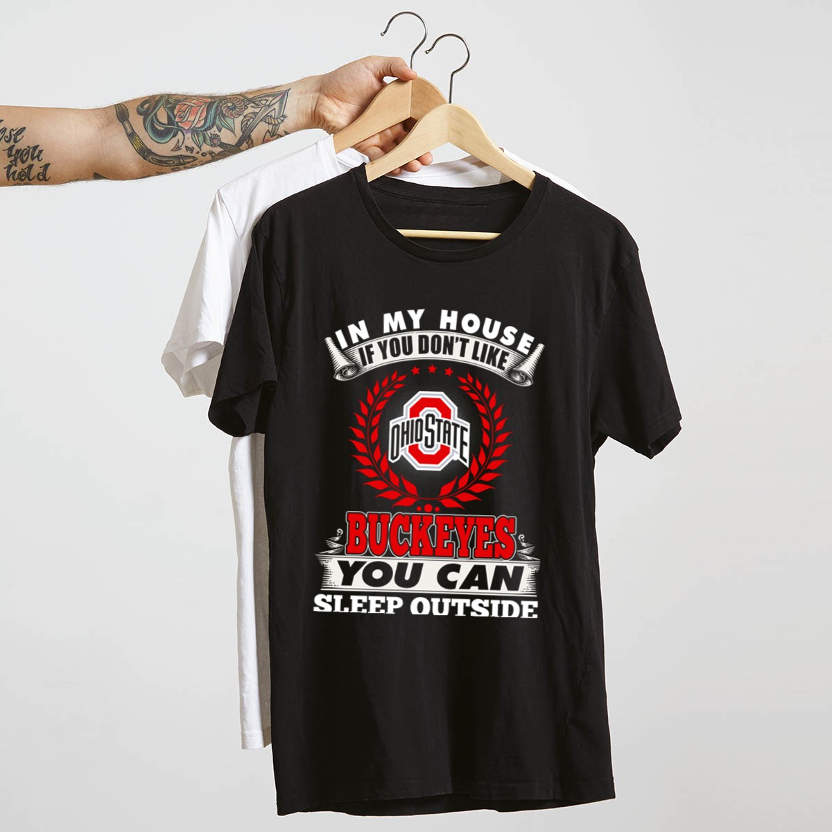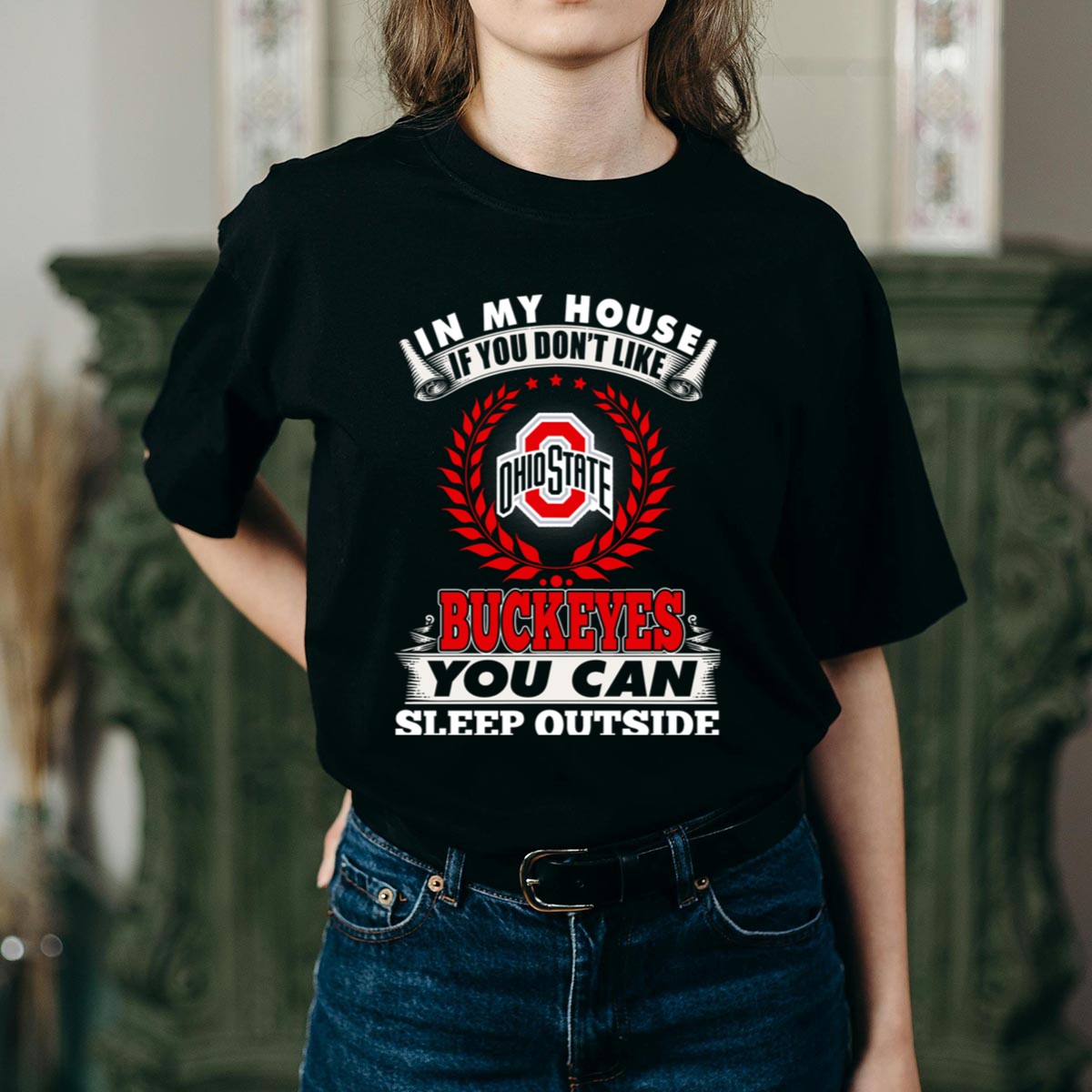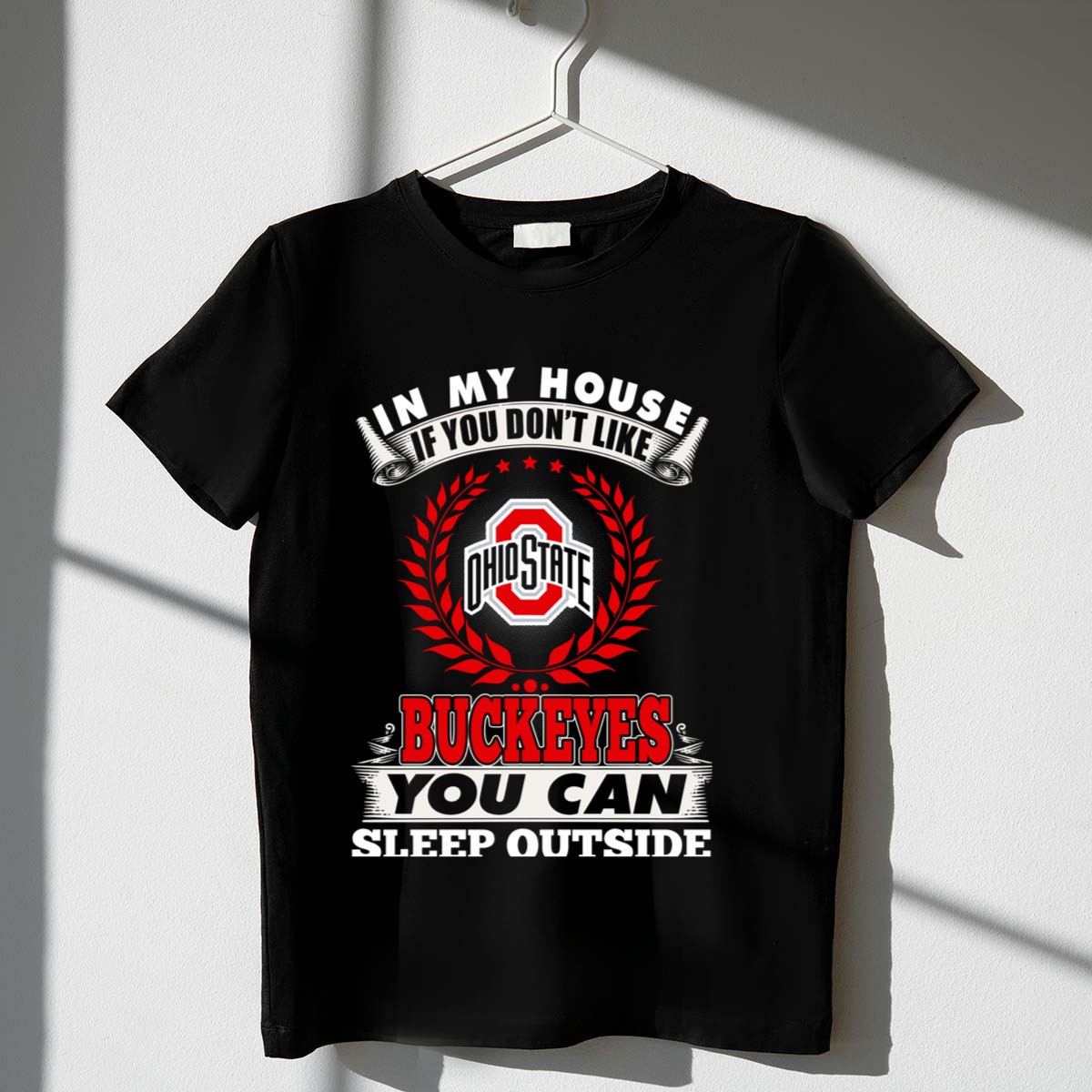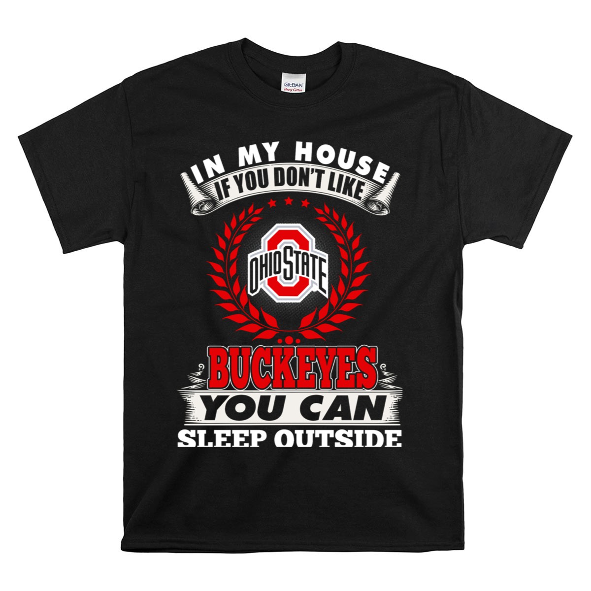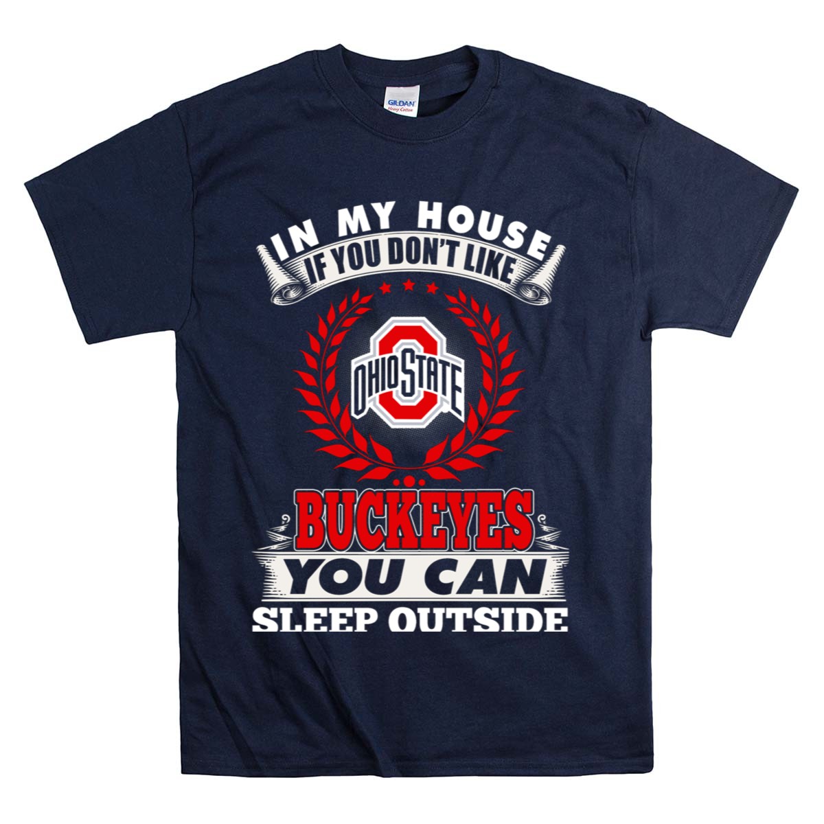 Show your unwavering support for the Ohio State Buckeyes with our fan-made “In My House If You Don’t Like Ohio State Buckeyes You Can Sleep Outside” T-shirt. Perfect for die-hard fans, this shirt is ideal for casual outings, game days, or themed events where you want to make a statement. Printed right here in the USA, this unique design not only showcases your team pride but also offers a comfortable fit for all-day wear.