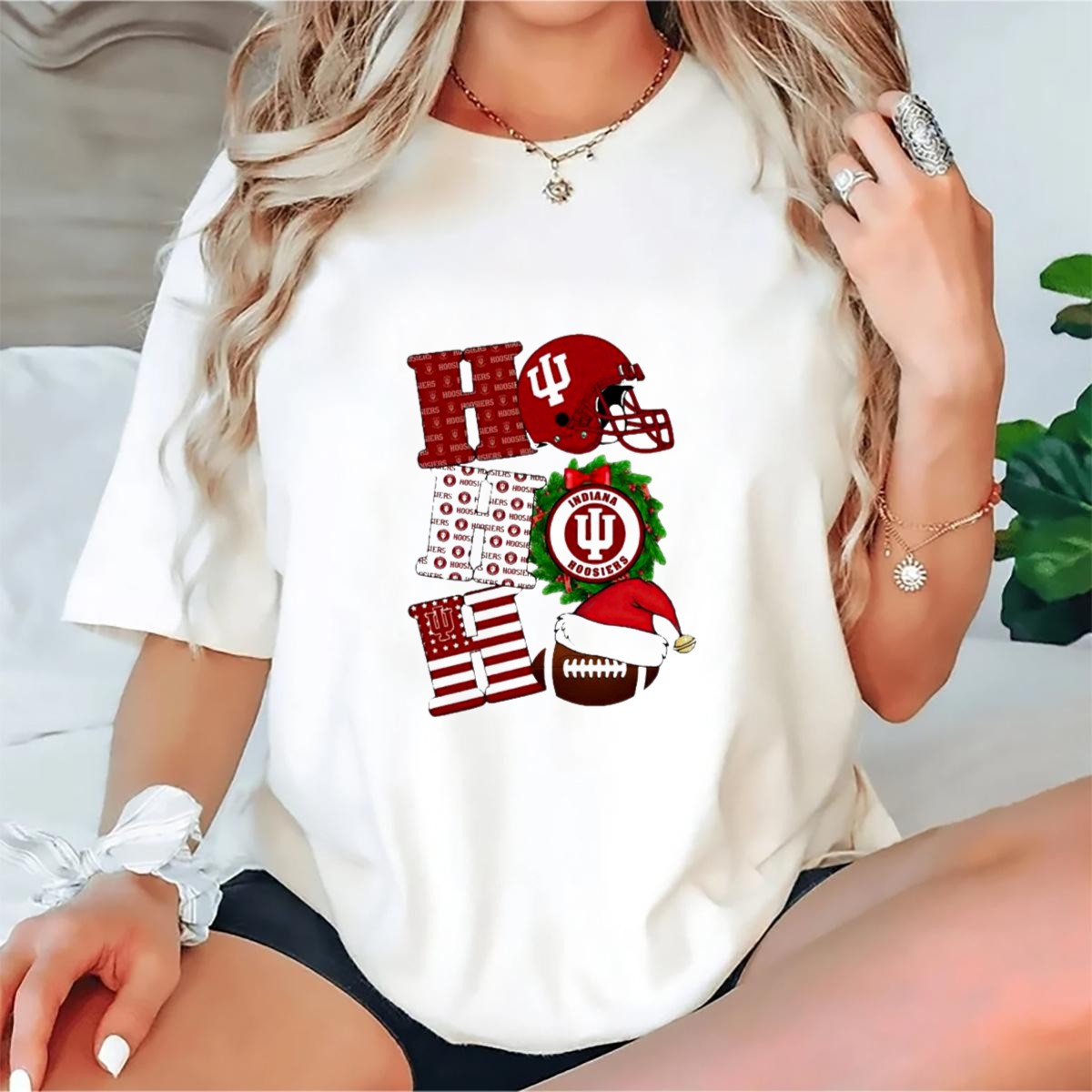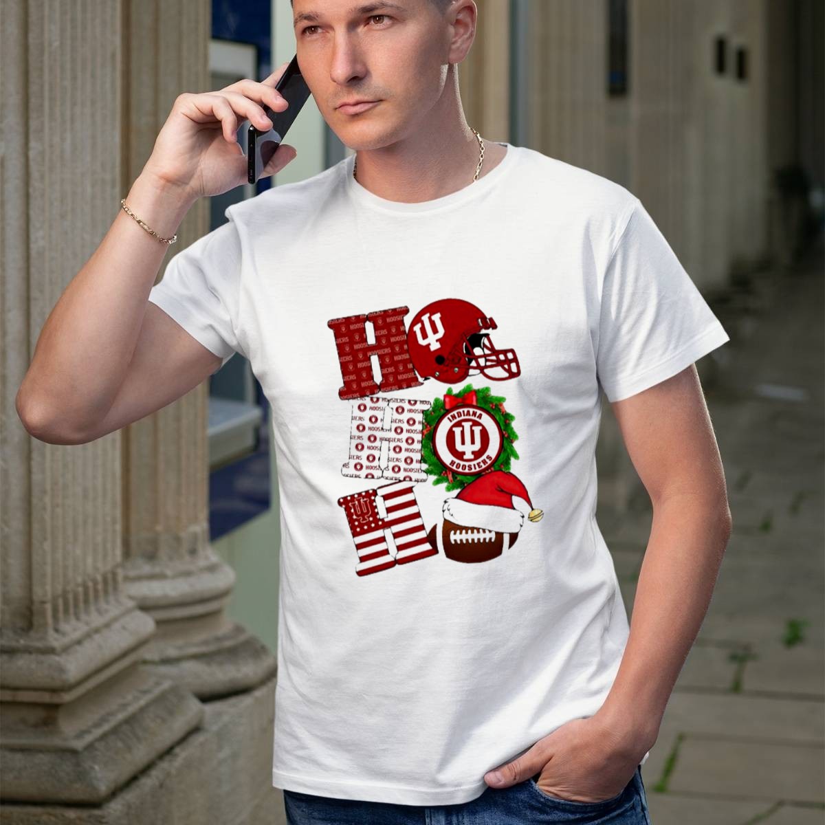 Get into the festive spirit with our Indiana Hoosiers Christmas Ho Ho Ho Football Helmet Wreath Santa Hat T-Shirt! This fan-made design is perfect for die-hard Hoosiers fans who want to celebrate the holiday season in style. Whether you’re attending a themed event, heading to a casual gathering, or just want to show off your team spirit during the holidays, this shirt is your go-to choice. With its vibrant print and comfortable fit, you’ll be ready to spread cheer while supporting your favorite team!
