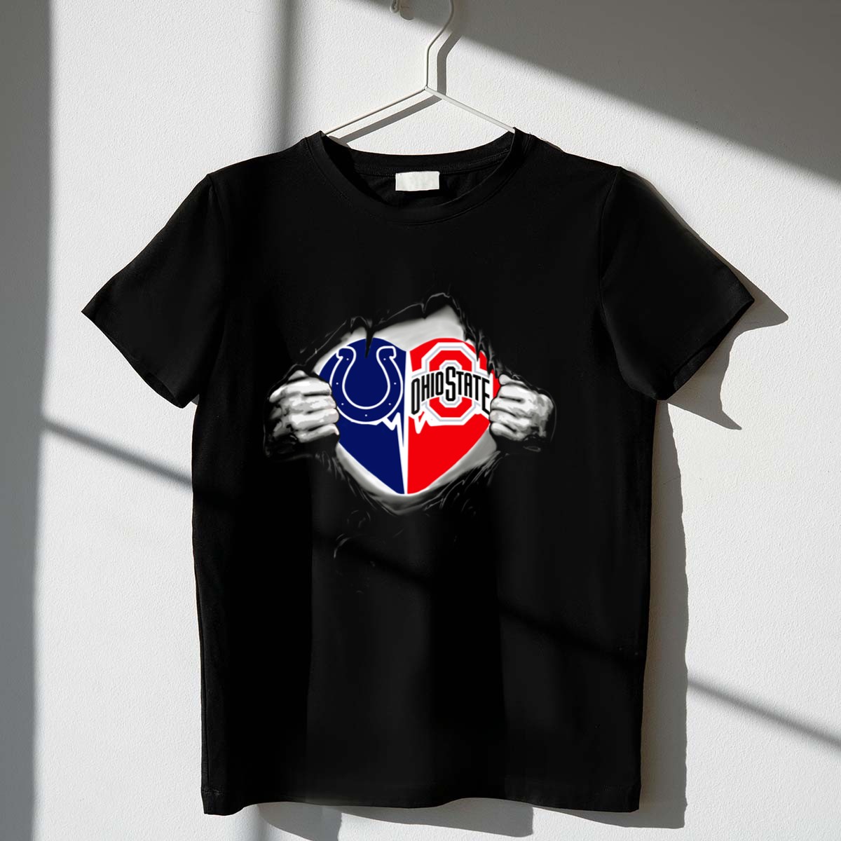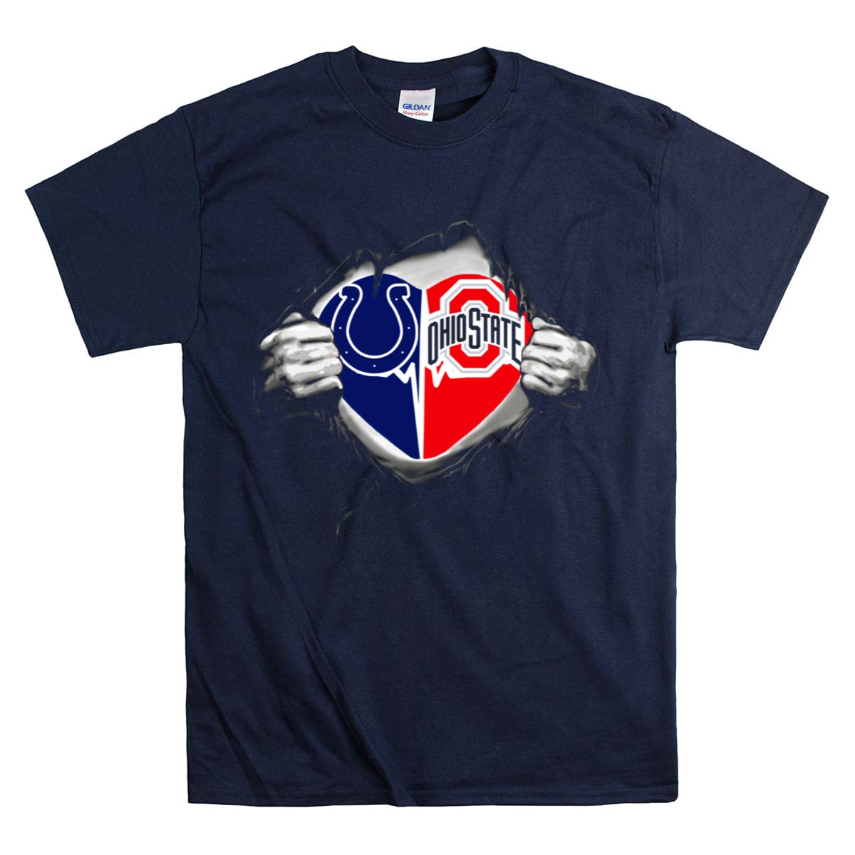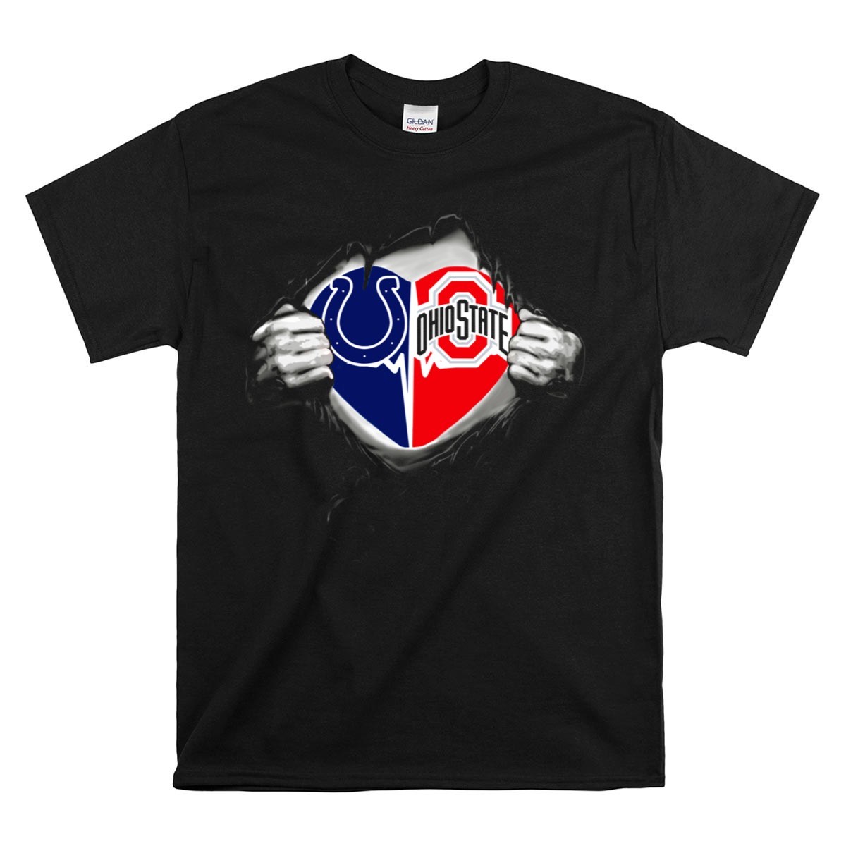 Show your team spirit with the Indianapolis Colts Ohio State Buckeyes Split Logo Fan Crossover T-Shirt! This unique design celebrates two of your favorite teams, making it the perfect choice for passionate fans. Whether you’re heading to a game, a casual outing, or themed events, this shirt combines comfort and style effortlessly. Printed in the USA, it’s not just a T-shirt; it’s a statement of your fandom!