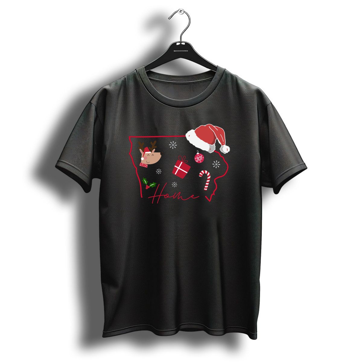 Be the first to review “Iowa Christmas Home Joy Reindeer Gift Candy Cane Snowflakes Santa Hat T Shirt”
