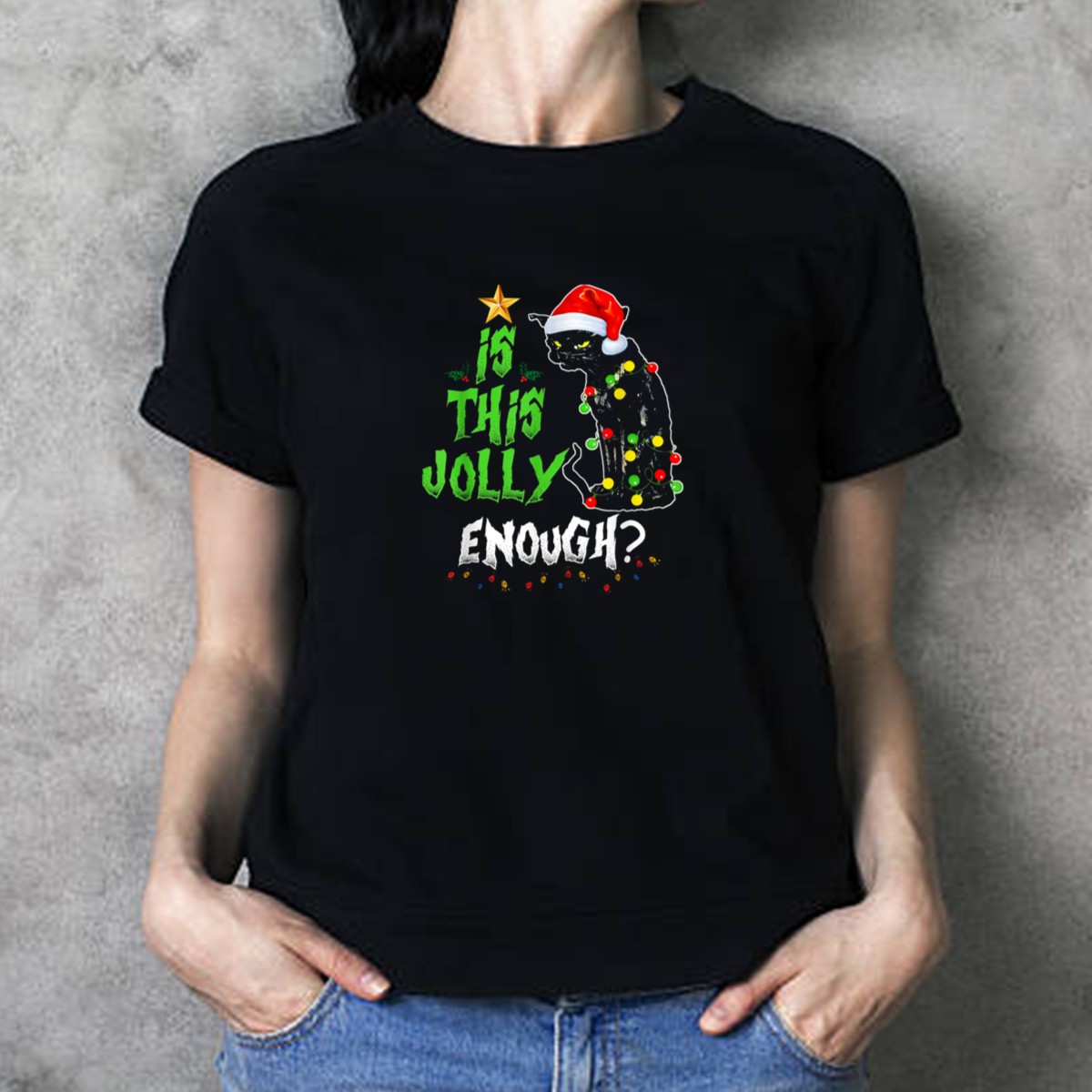 Be the first to review “Is This Jolly Enough Cat Christmas Lights Santa Hat T-Shirt”