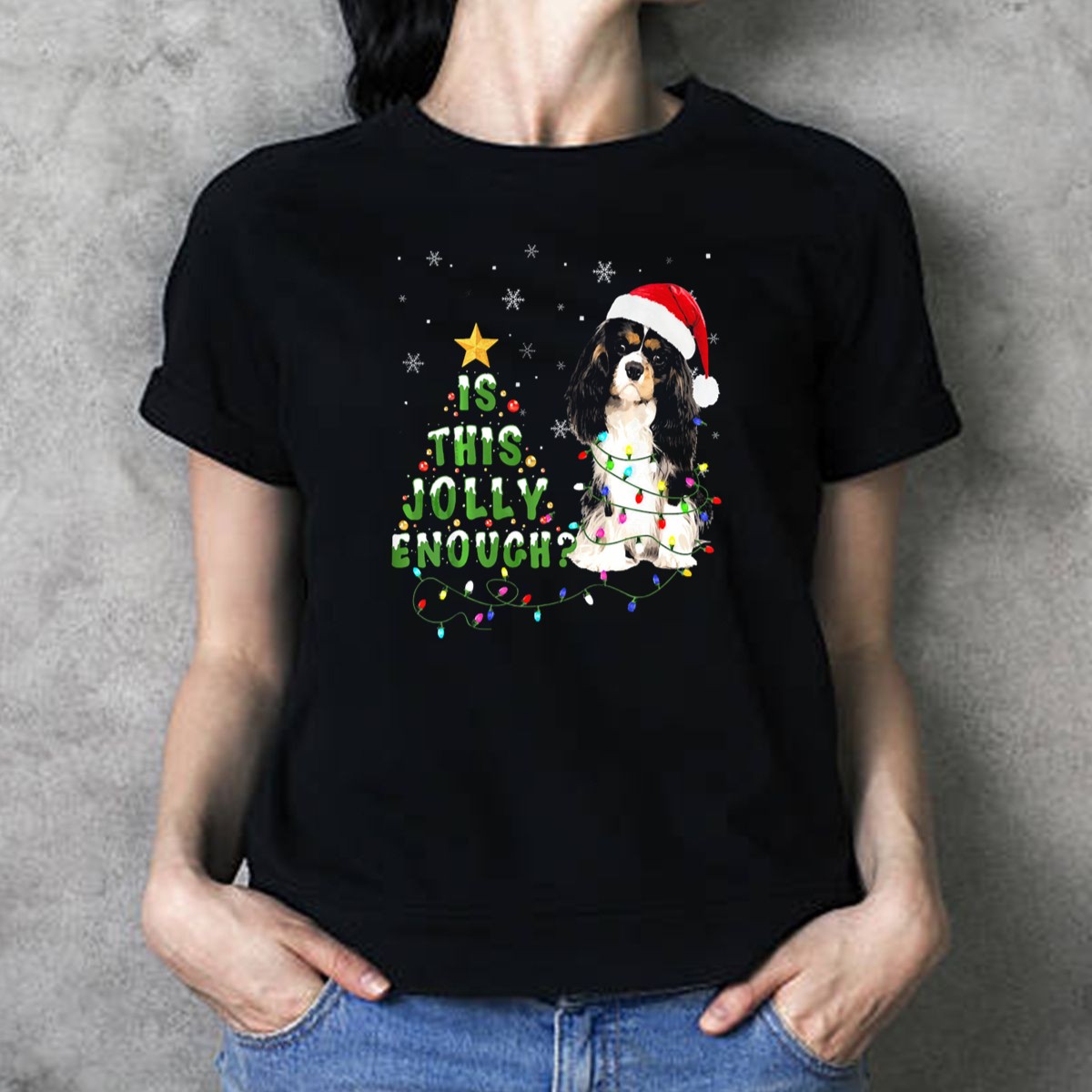 Is This Jolly Enough Cavalier King Charles Christmas Santa Lights T Shirt