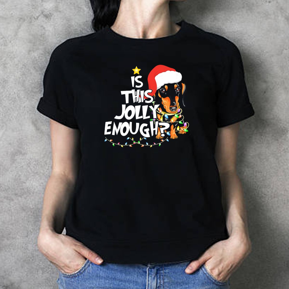 Is This Jolly Enough Christmas Dachshund With Santa Hat And Lights T Shirt