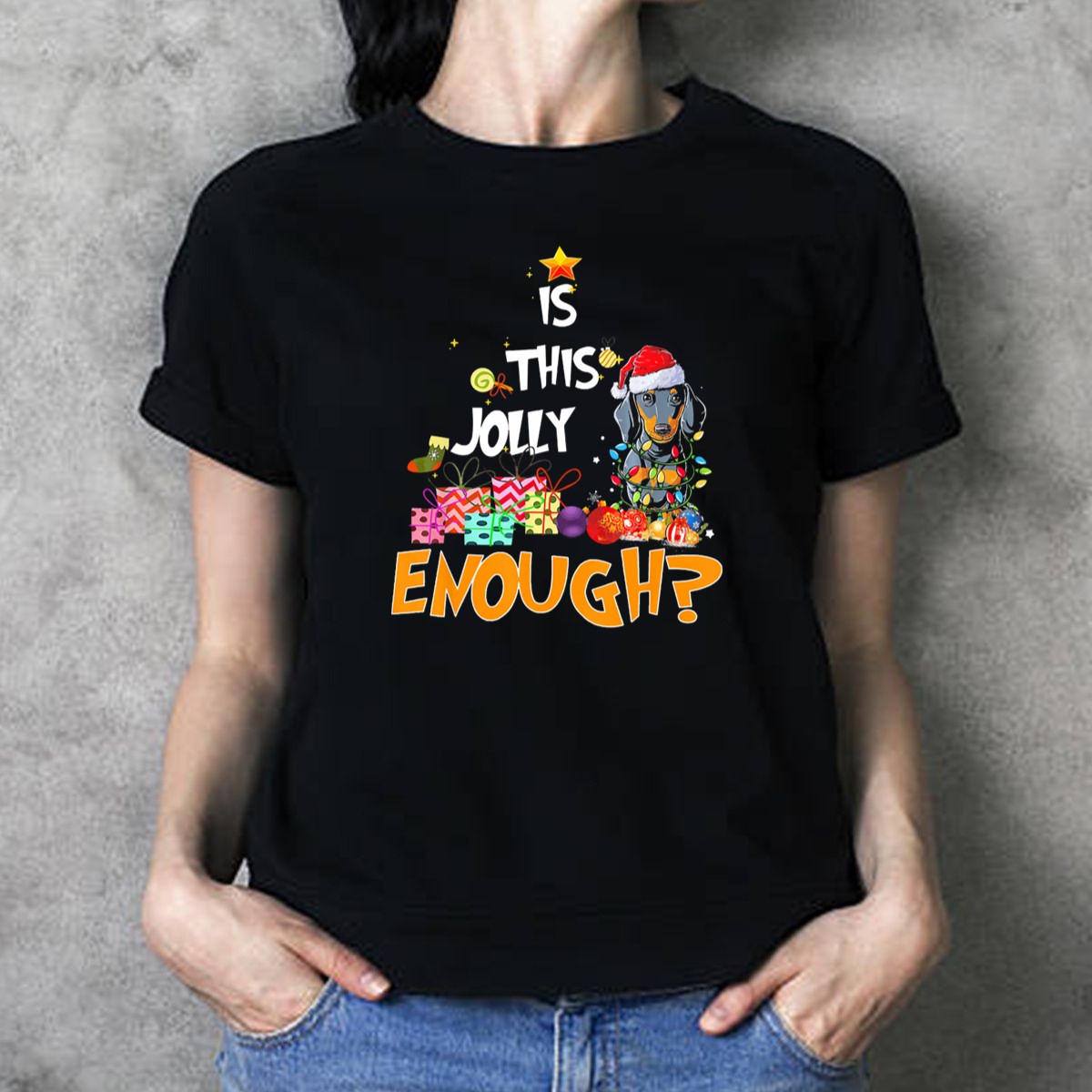 Be the first to review “Is This Jolly Enough Dachshund Christmas Lights Santa Hat Gifts T Shirt”