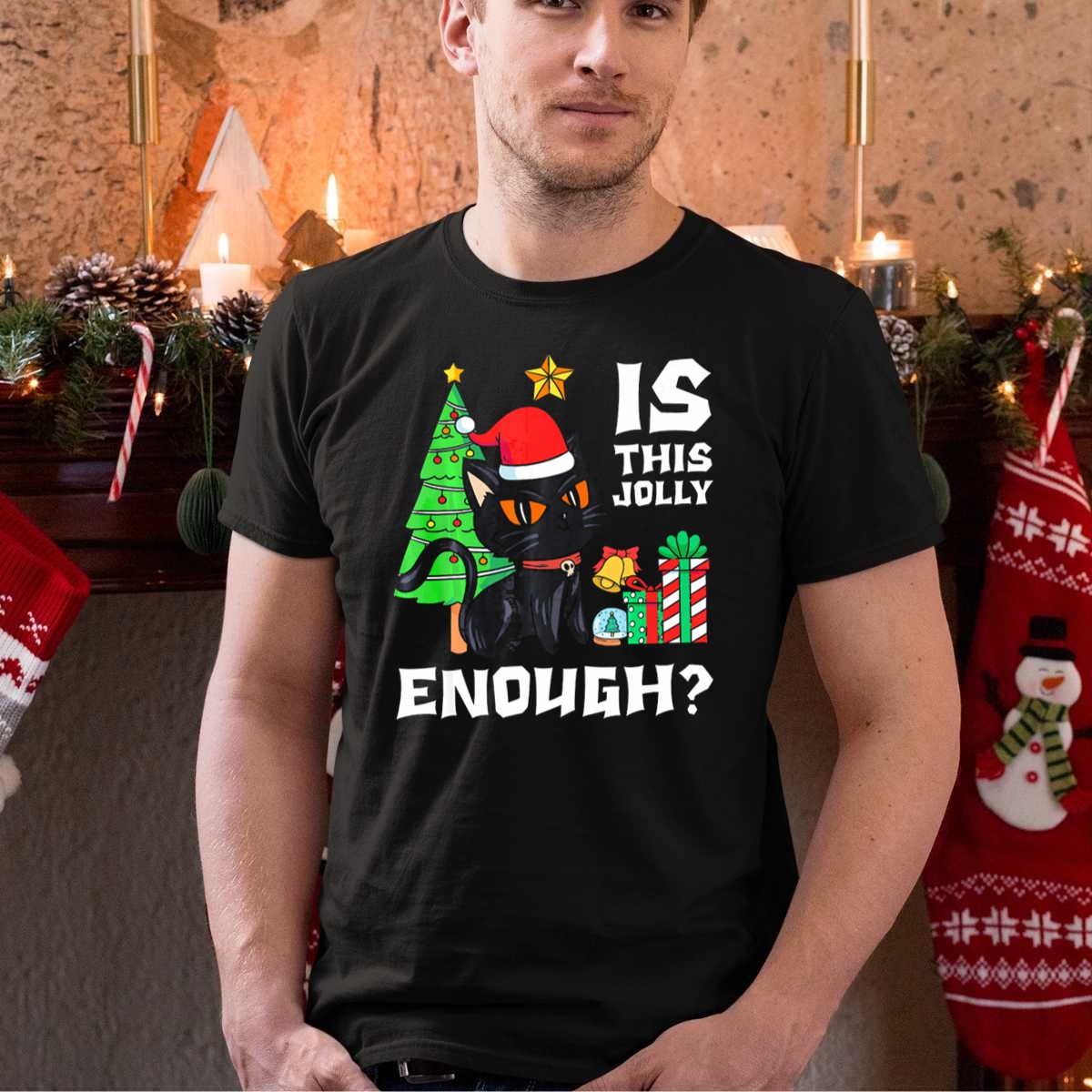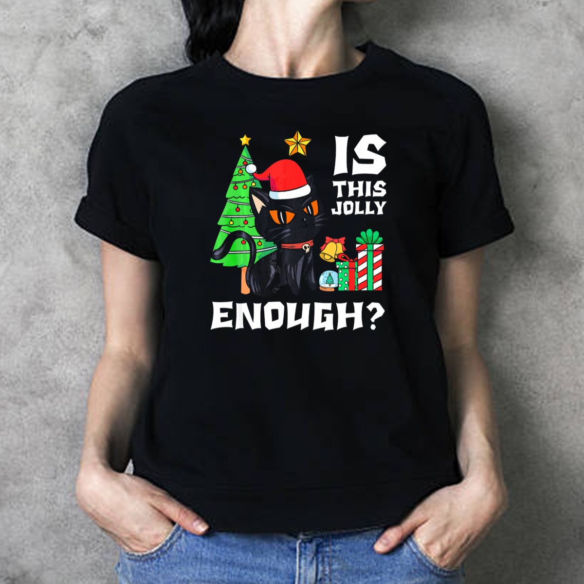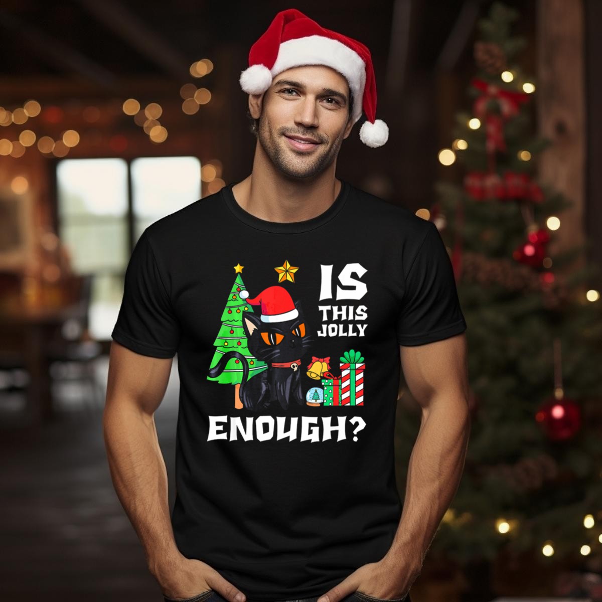 Celebrate the holiday season with a dash of humor and a whole lot of charm in our “Is This Jolly Enough” Funny Black Cat Christmas Tree T-Shirt! Perfect for cat lovers and anyone looking to add a playful twist to their festive wardrobe, this shirt is ideal for casual get-togethers, themed events, or just lounging around during the holidays. Featuring a fan-made design printed in the USA, it’s a unique addition that combines comfort with festive fun.