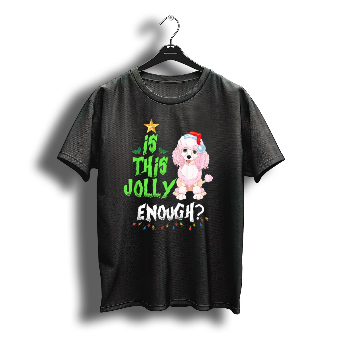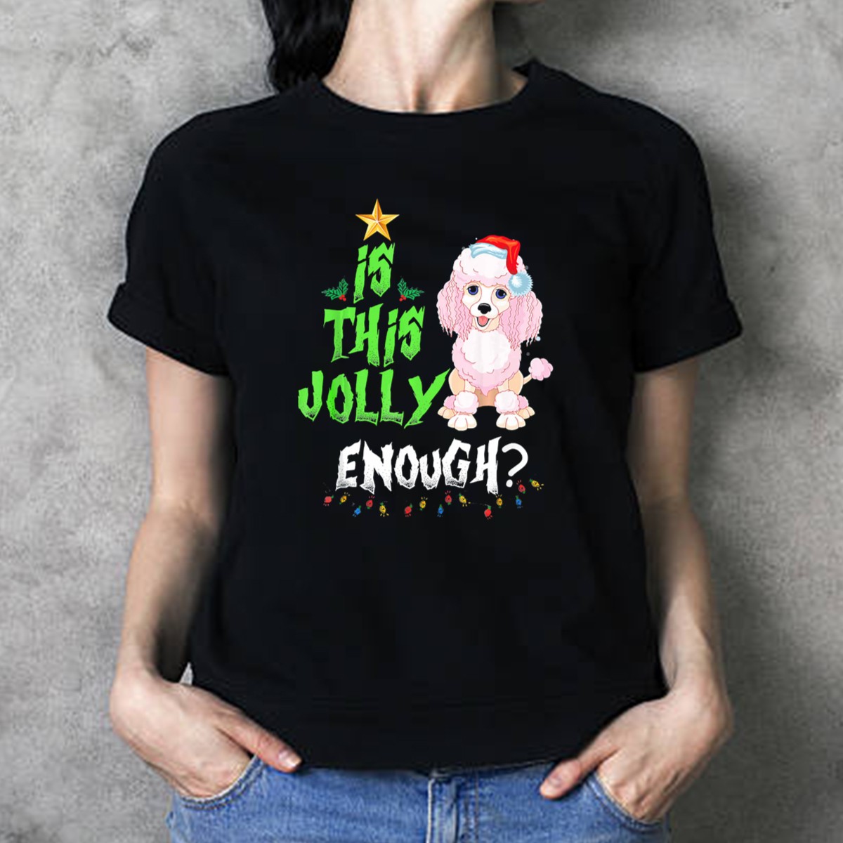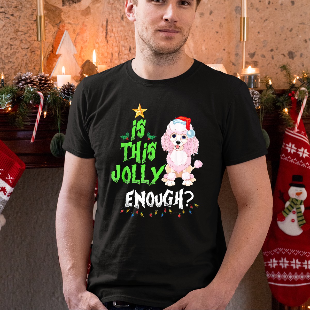 Get ready to spread some holiday cheer with our “Is This Jolly Enough Noel Poodle Santa” T-shirt! Perfect for dog lovers and holiday enthusiasts alike, this whimsical design features a festive poodle dressed as Santa, complete with Christmas lights and a jolly hat. Ideal for casual wear, themed events, or daily outings during the holiday season, this shirt brings a touch of fun and festivity to your wardrobe while showcasing your love for our furry friends. Made with care and printed in the USA, this fan-made design is sure to be a conversation starter at any gathering!
