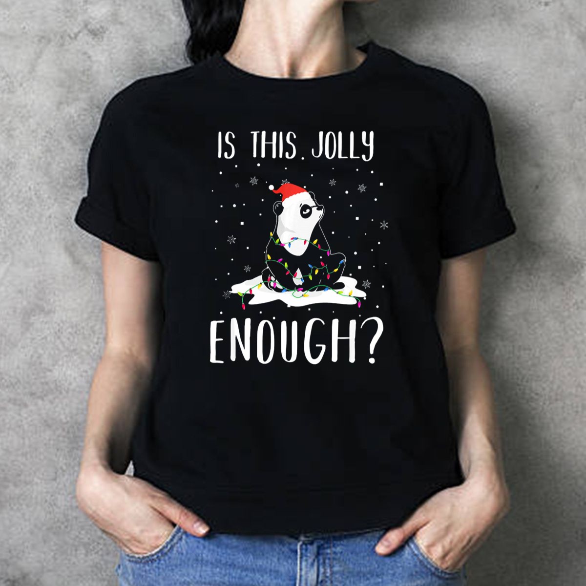 Get into the holiday spirit with our “Is This Jolly Enough Panda Christmas Pajamas” T-shirt! Perfect for panda lovers and festive fun-seekers alike, this shirt features an adorable design that captures the joy of the season with a playful panda wearing a Santa hat, surrounded by cheerful lights and snowflakes. Whether you’re celebrating at home, attending a themed event, or just lounging around, this soft and breathable tee is your go-to choice for all-day comfort and style during the festive season.