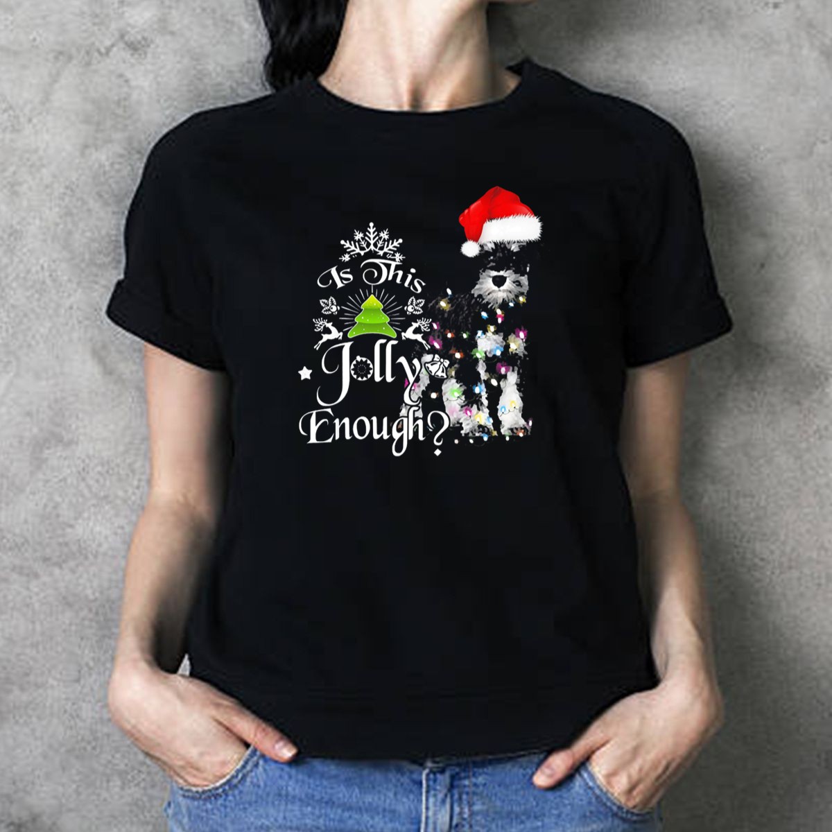 Get into the festive spirit with our “Is This Jolly Enough Schnauzer In Santa Hat With Christmas Lights And Tree” T-shirt! Perfect for dog lovers and holiday enthusiasts alike, this fun and whimsical design showcases a charming schnauzer ready to celebrate the season. Made for casual wear, themed events, or simply spreading holiday cheer, this shirt will keep you feeling comfortable and stylish all season long. Show off your love for your furry friend while enjoying the soft, breathable fabric that makes it a must-have addition to your wardrobe.