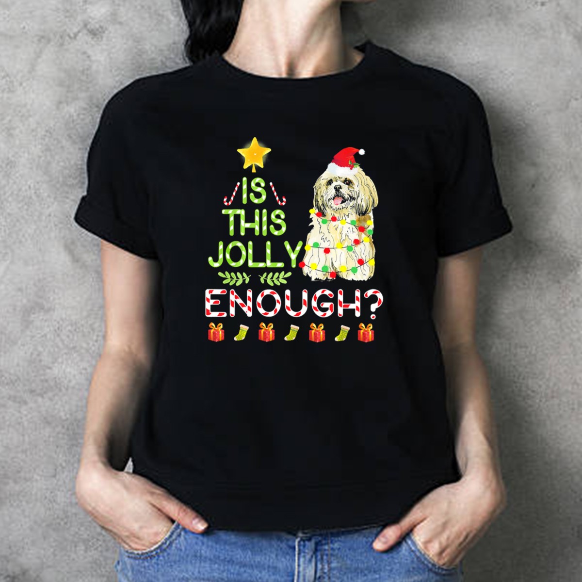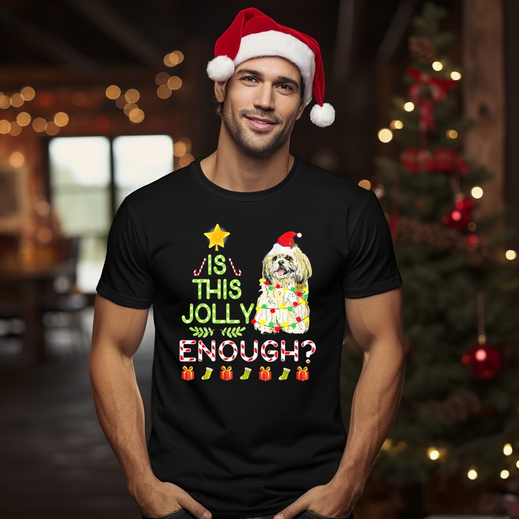 Get into the festive spirit with our “Is This Jolly Enough” Shih Tzu Santa Hat Christmas Lights T-Shirt! Perfect for dog lovers and anyone who enjoys a humorous take on holiday attire, this shirt is ideal for casual wear, themed events, or simply spreading cheer during the holiday season. The fan-made design showcases a playful Shih Tzu adorned with a Santa hat and surrounded by twinkling Christmas lights, making it a unique addition to your wardrobe that celebrates the joy of the season.