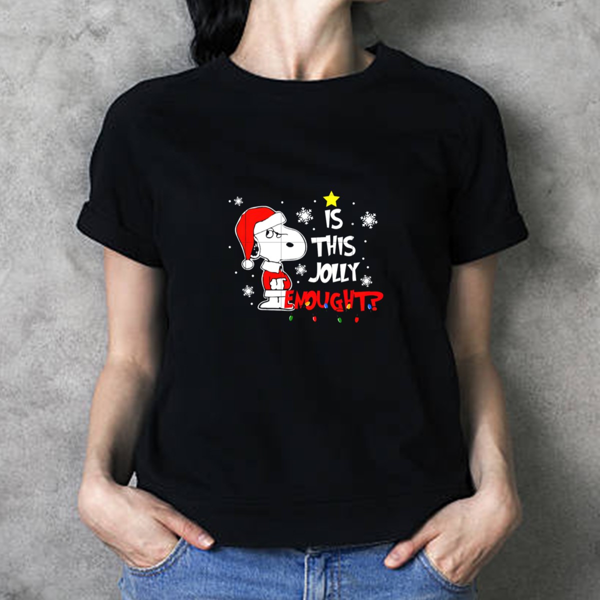 Get into the festive spirit with our “Is This Jolly Enough Snoopy Christmas Santa Hat Snowflakes Lights T-Shirt.” Perfect for fans of the beloved Peanuts gang, this shirt brings joy and cheer to your holiday celebrations. Ideal for casual wear, themed events, or just spreading some seasonal happiness, its unique fan-made design adds a touch of whimsy to any outfit. Made in the USA, this tee is a delightful way to showcase your love for Snoopy while staying comfortable and stylish throughout the holiday season.
