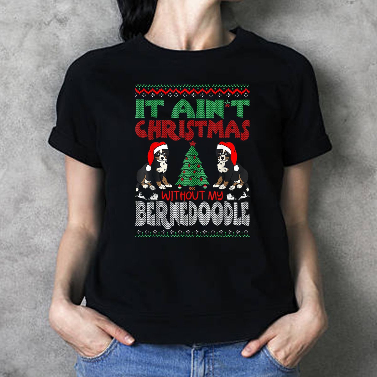 Be the first to review “It Aint Christmas Without My Bernese Mountain Dog Cross Breed Wearing Santa Hat And Christmas Tree T-Shirt”