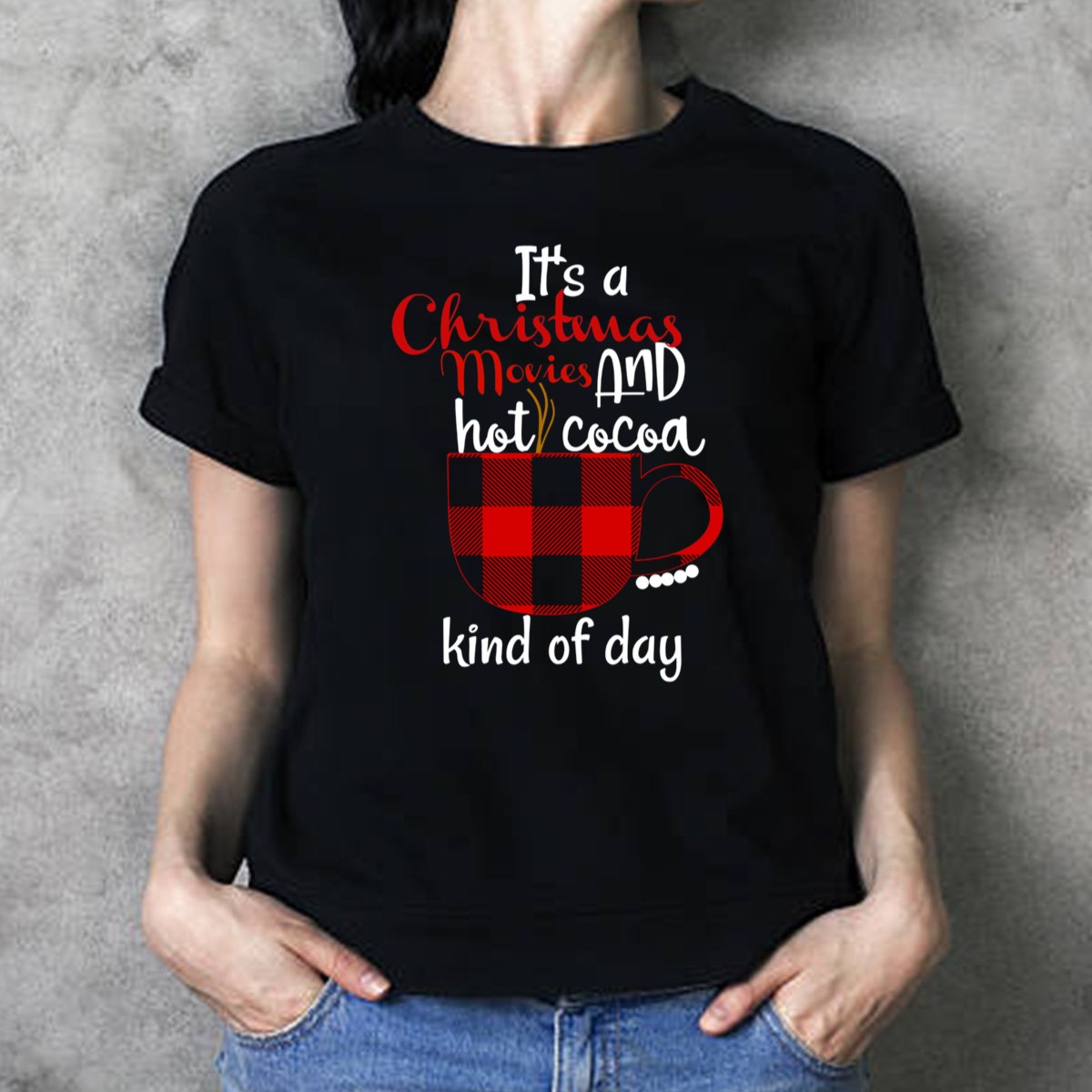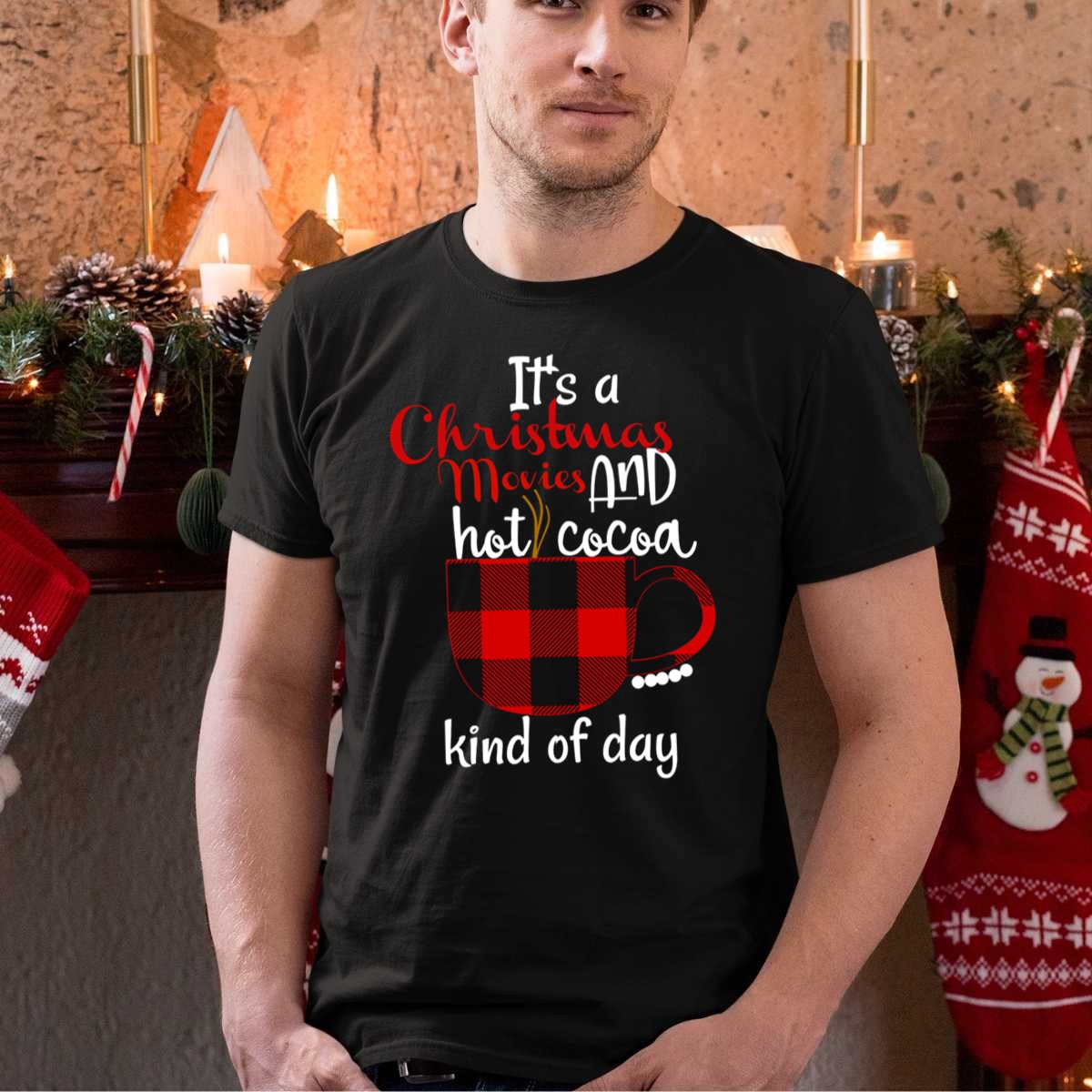 Celebrate the cozy spirit of the holidays with our “It’s A Christmas Movies And Hot Cocoa Kind Of Day” Buffalo Plaid Mug T-Shirt! Perfect for those who love snuggling up with festive films and a warm drink, this fan-made design is ideal for casual wear, themed events, or simply embracing the comfort of daily life during the festive season. Printed in the USA, this shirt is a unique addition to your holiday wardrobe that will surely spread cheer wherever you go!