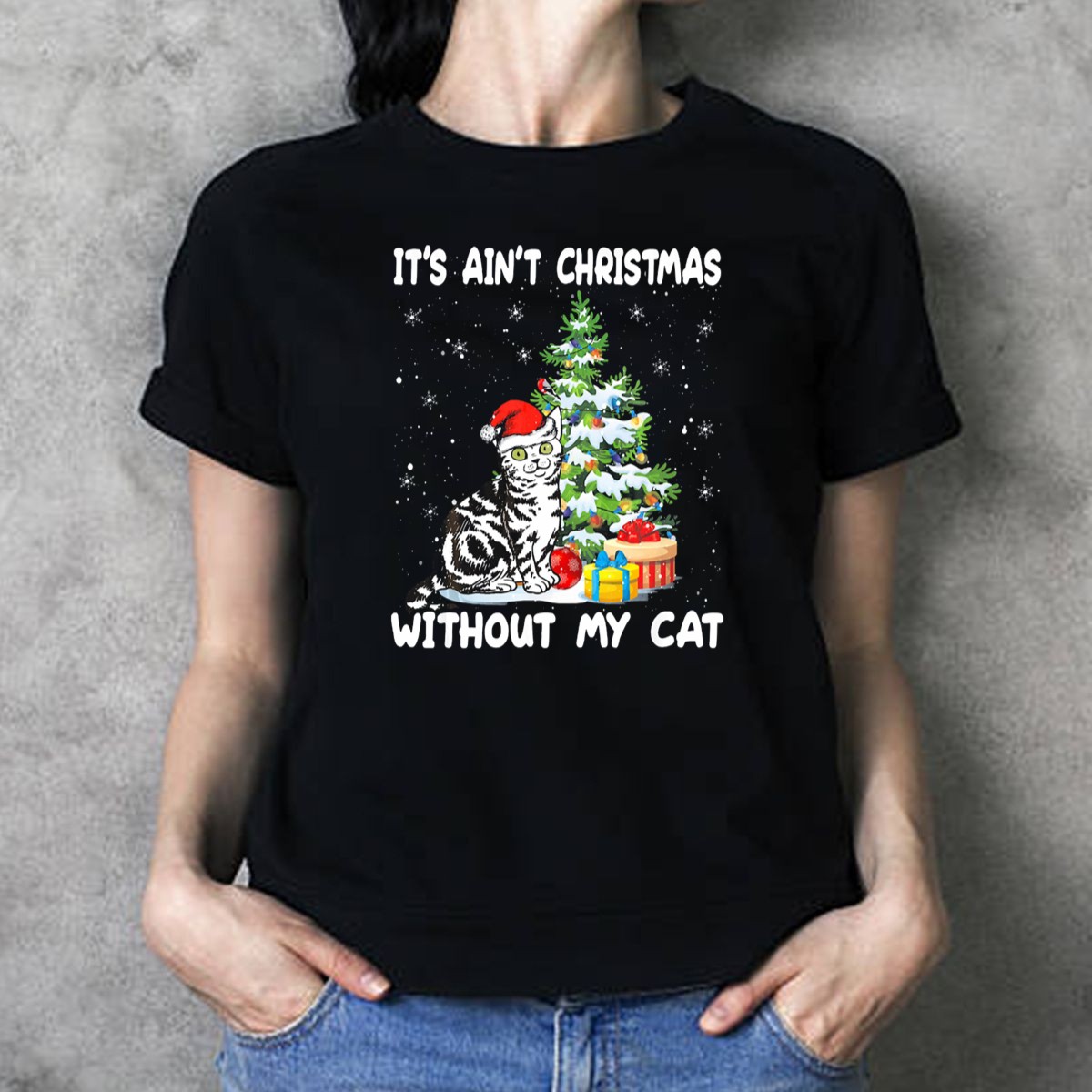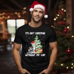 Celebrate the holiday season with our “It’s Ain’t Christmas Without My Cat” cute Christmas tree outfit T-shirt, perfect for cat lovers who want to showcase their festive spirit! Made for those cozy gatherings, themed events, or simply lounging at home, this shirt combines comfort and style. With its charming design printed in the USA, it’s a unique addition to any cat lover’s wardrobe that ensures you stand out during the most wonderful time of the year.