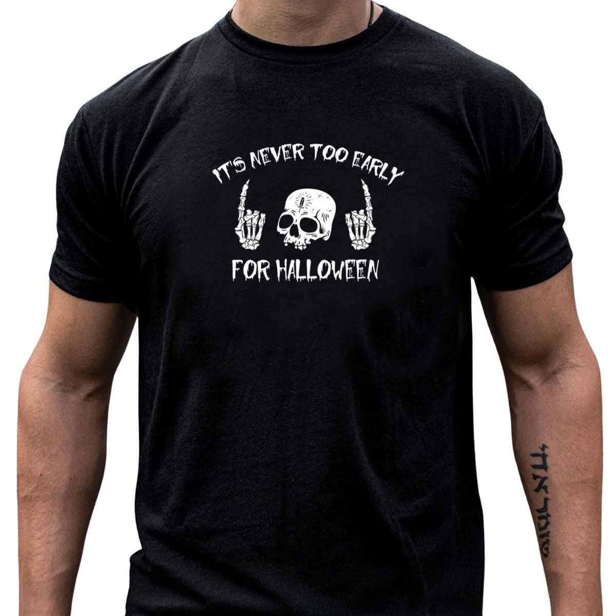 Get ready to embrace the spooky spirit all year round with our “It’s Never Too Early For Halloween” Skull and Skeleton Hands T-Shirt! Perfect for Halloween enthusiasts, this fan-made design brings a touch of eerie charm to your casual wardrobe. Whether you’re attending themed events, hanging out with friends, or just want to showcase your love for the season, this shirt is a must-have for any occasion. Printed in the USA, it combines style and comfort for a unique piece that stands out.