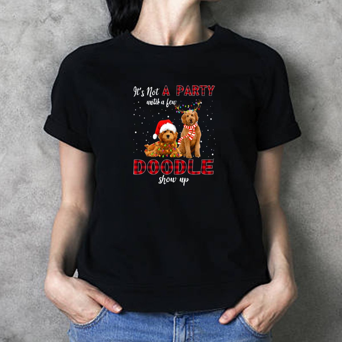 Get ready to spread holiday cheer with our “It’s Not A Party Until A Few Doodle Show Up” T-shirt! Perfect for dog lovers and festive gatherings, this fun graphic tee showcases adorable doodle dogs sporting Santa hats and reindeer antlers, making it an ideal choice for casual wear, themed events, or just enjoying daily life during the holiday season. Crafted for comfort and style, this shirt is not just a piece of clothing; it’s a celebration of fun and companionship, printed right here in the USA.