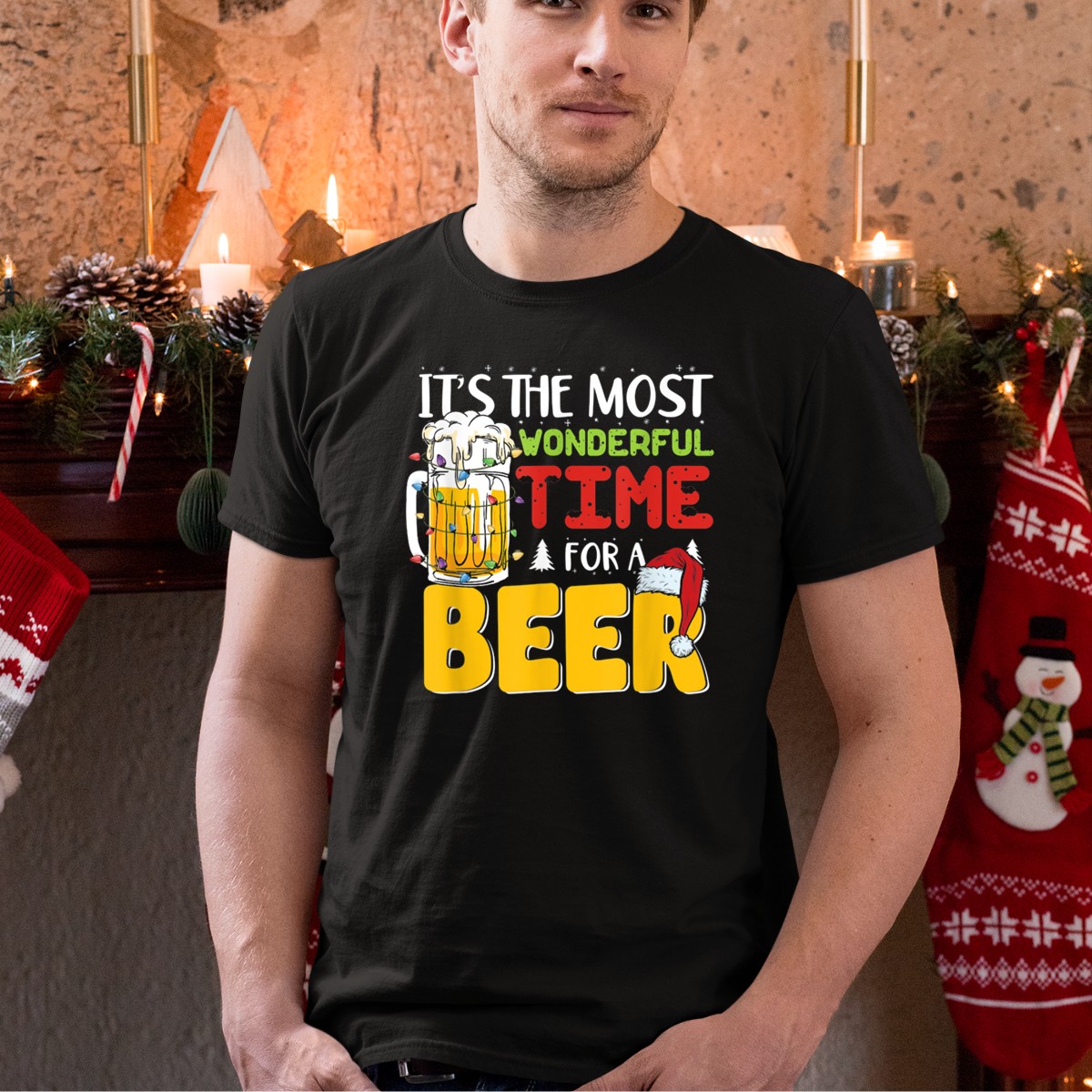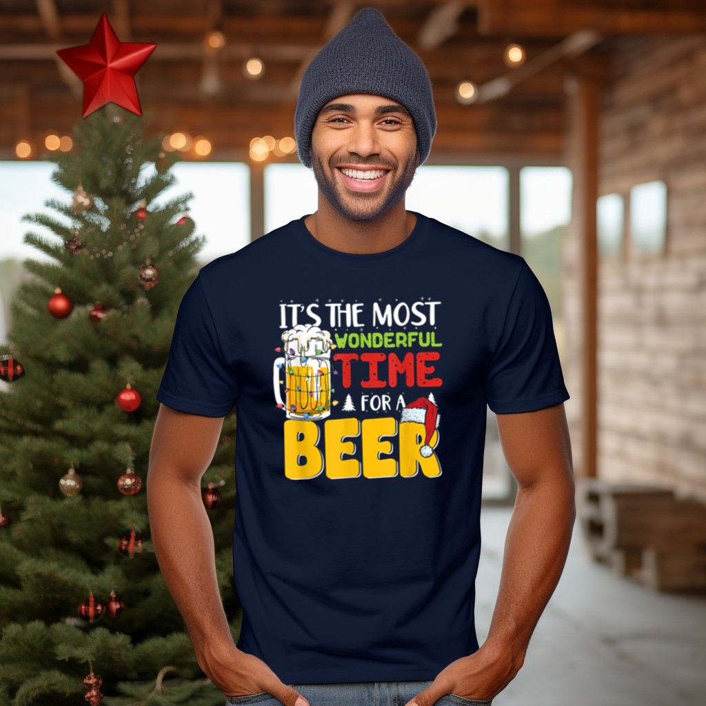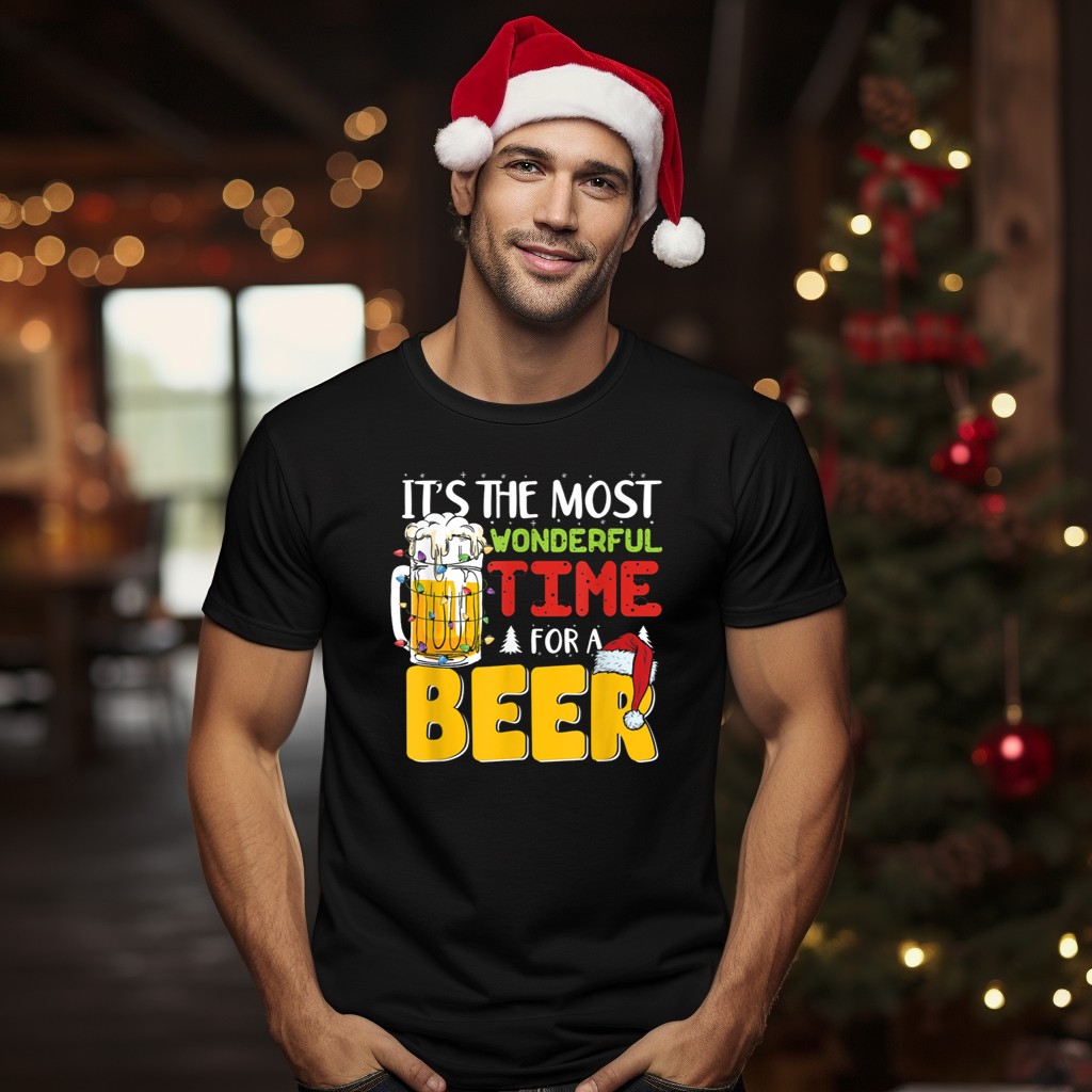 Celebrate the festive spirit with our “It’s The Most Wonderful Time For A Beer” Christmas Mug Santa Hat T-Shirt! Perfect for beer lovers and holiday enthusiasts alike, this fun and playful design is ideal for casual gatherings, themed events, or just spreading some cheer during the holiday season. Made for comfort and style, this shirt is a must-have for anyone looking to add a touch of humor to their festive wardrobe.